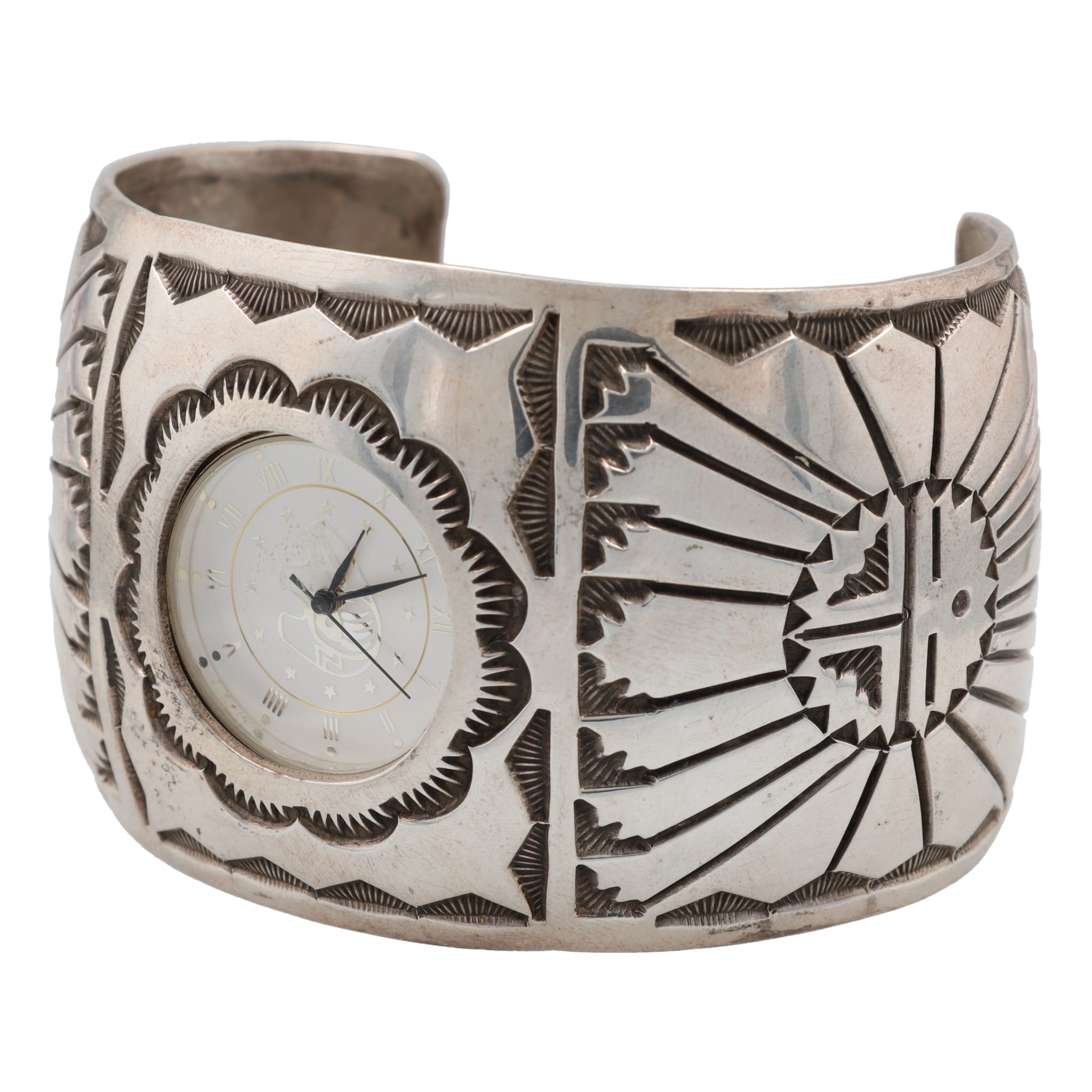 Ken & Mary Bill Navajo Sterling Sunface Watch Cuff Bracelet 112g