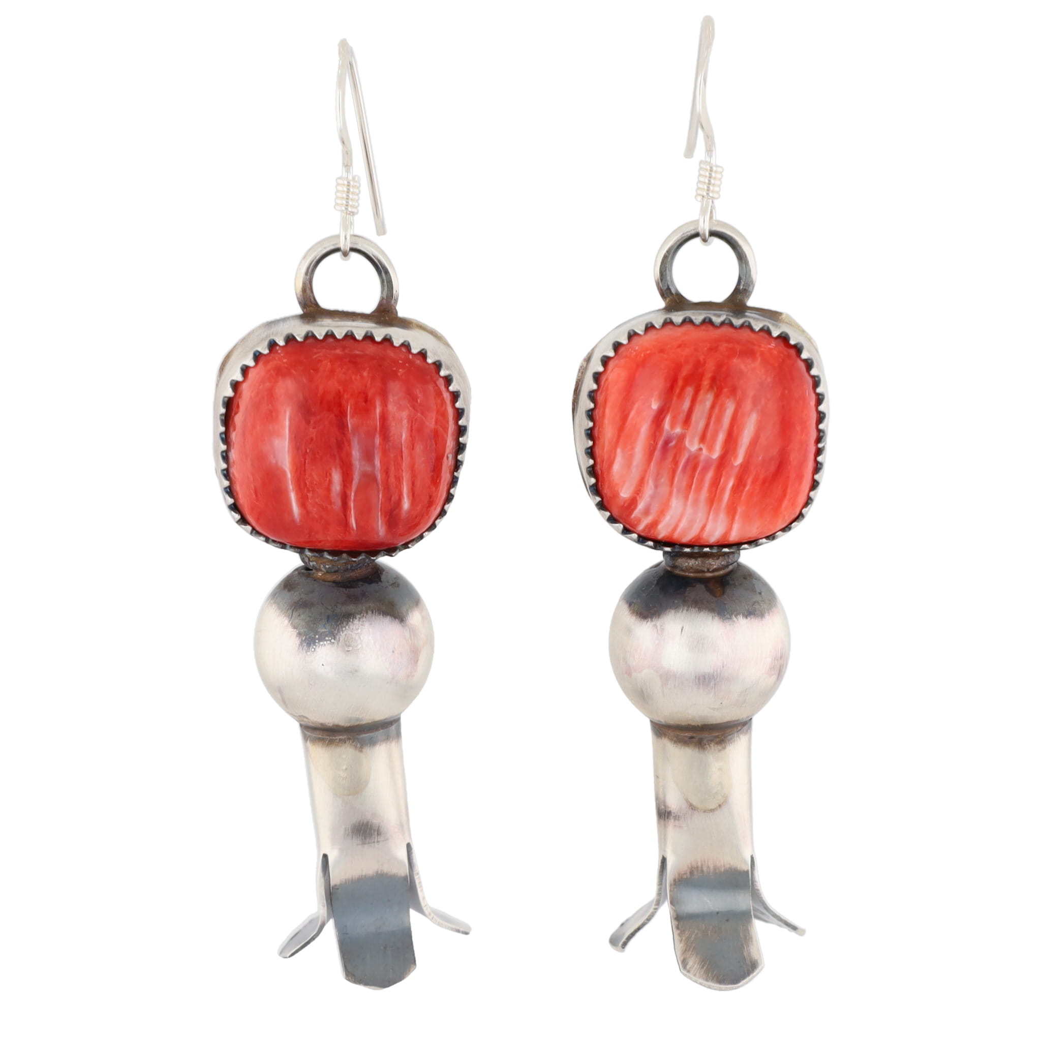 Tia Long Navajo Spiny Oyster Sterling Squash Blossom Hook Earrings 16g