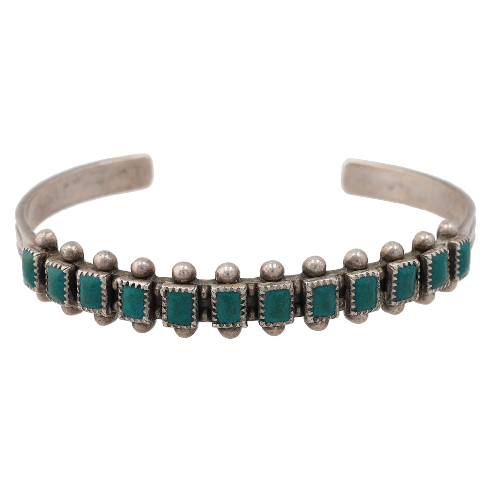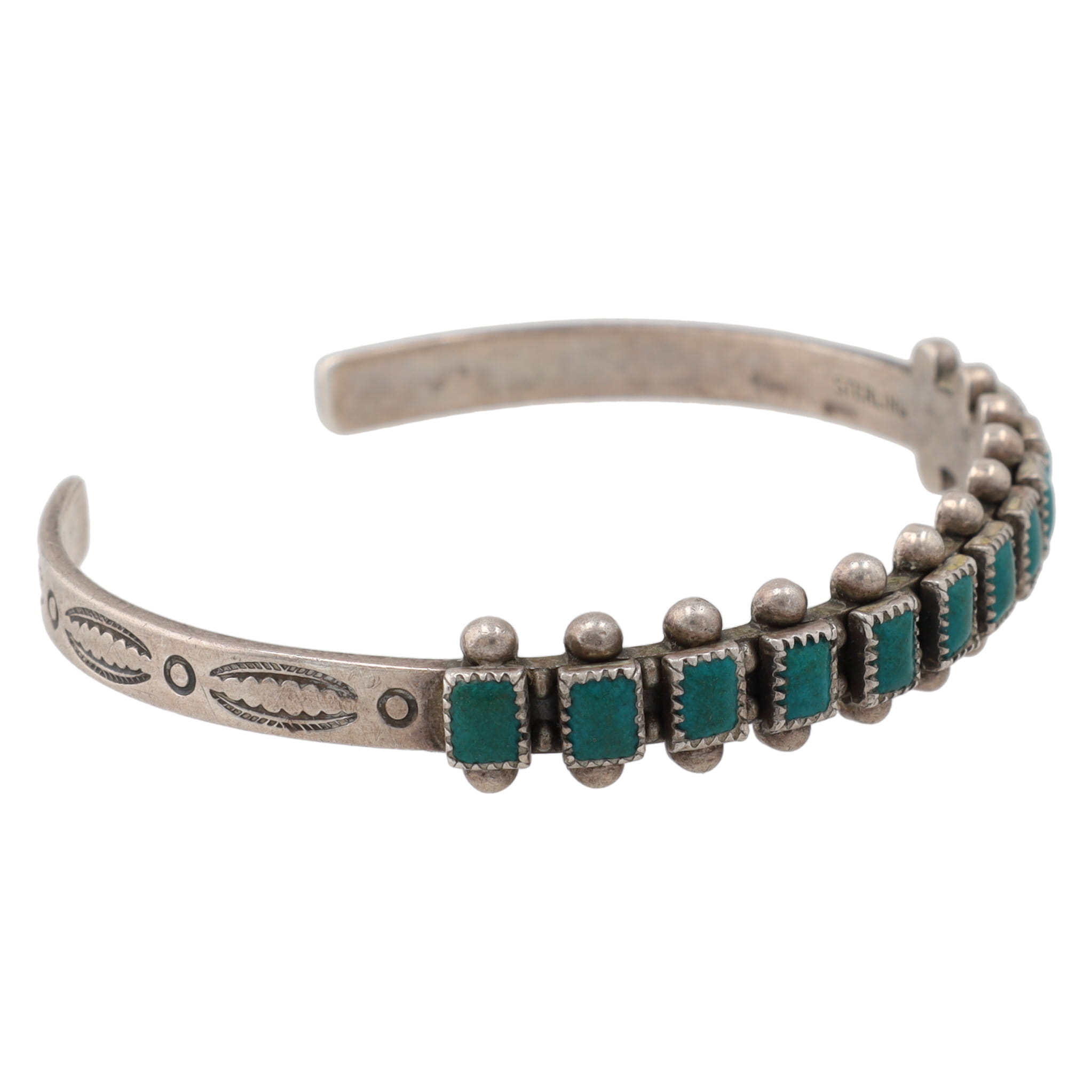 Vintage Navajo Green Turquoise Sterling Cuff Bracelet 14g