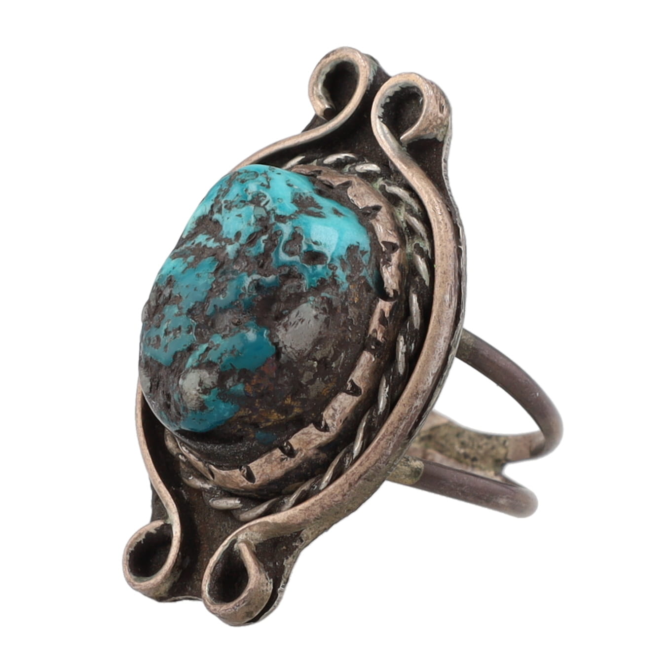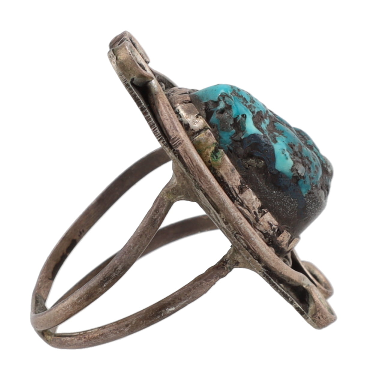 Vintage Navajo Chunky Turquoise Sterling Ring Sz 8, 8g