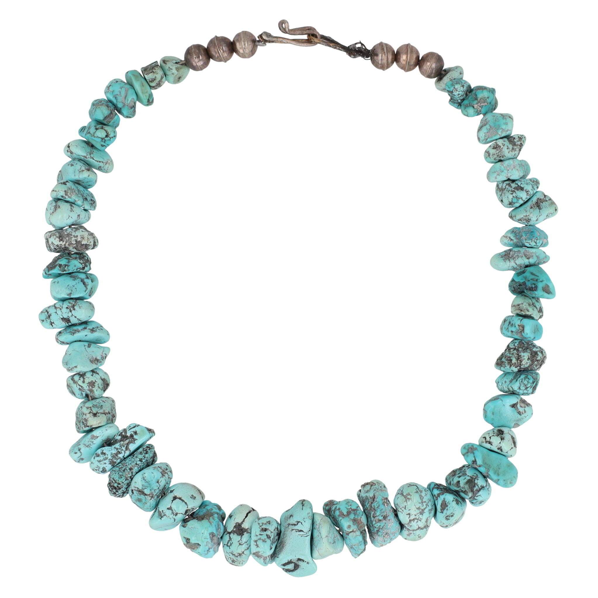 Vintage Navajo Chunky Turquoise Sterling Beaded Necklace 48g