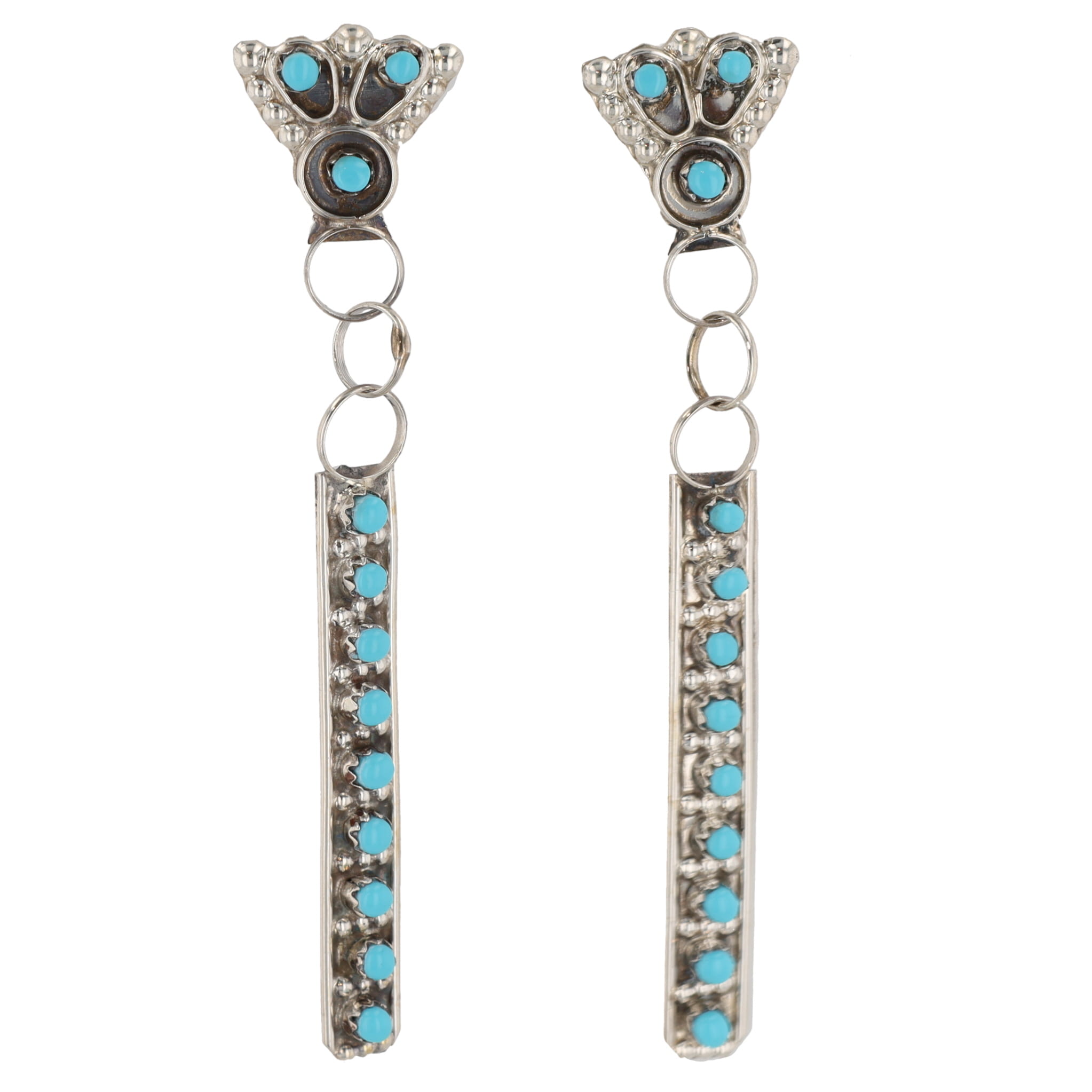 Davis Kaamasee Zuni Snake Eye Kingman Turquoise Sterling Earrings