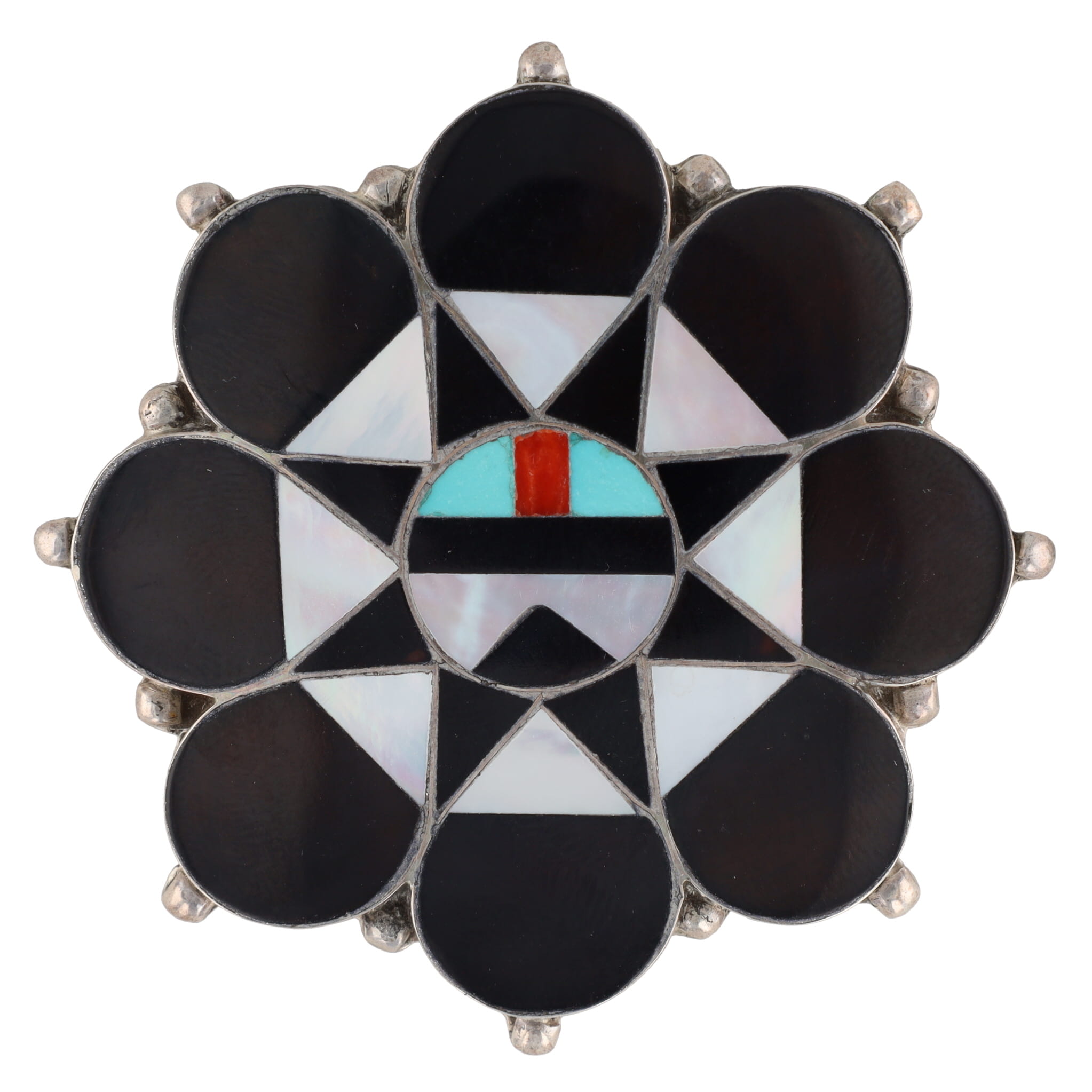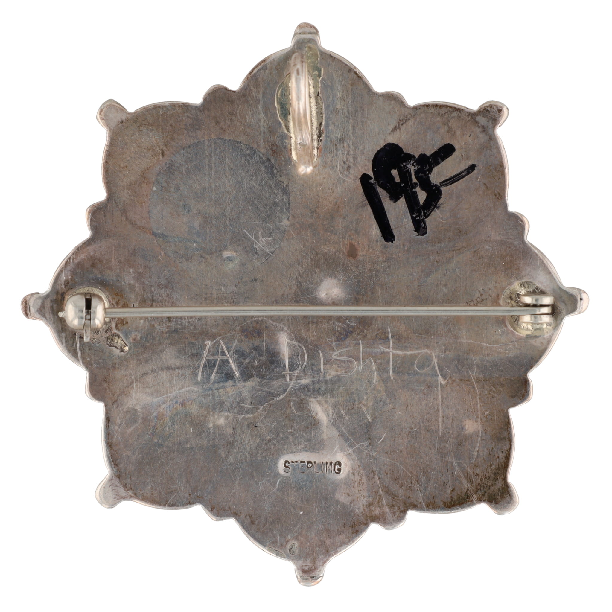 Allison Dishta Zuni Multi Stone Sterling Inlay Sunface Brooch Pendant 14g