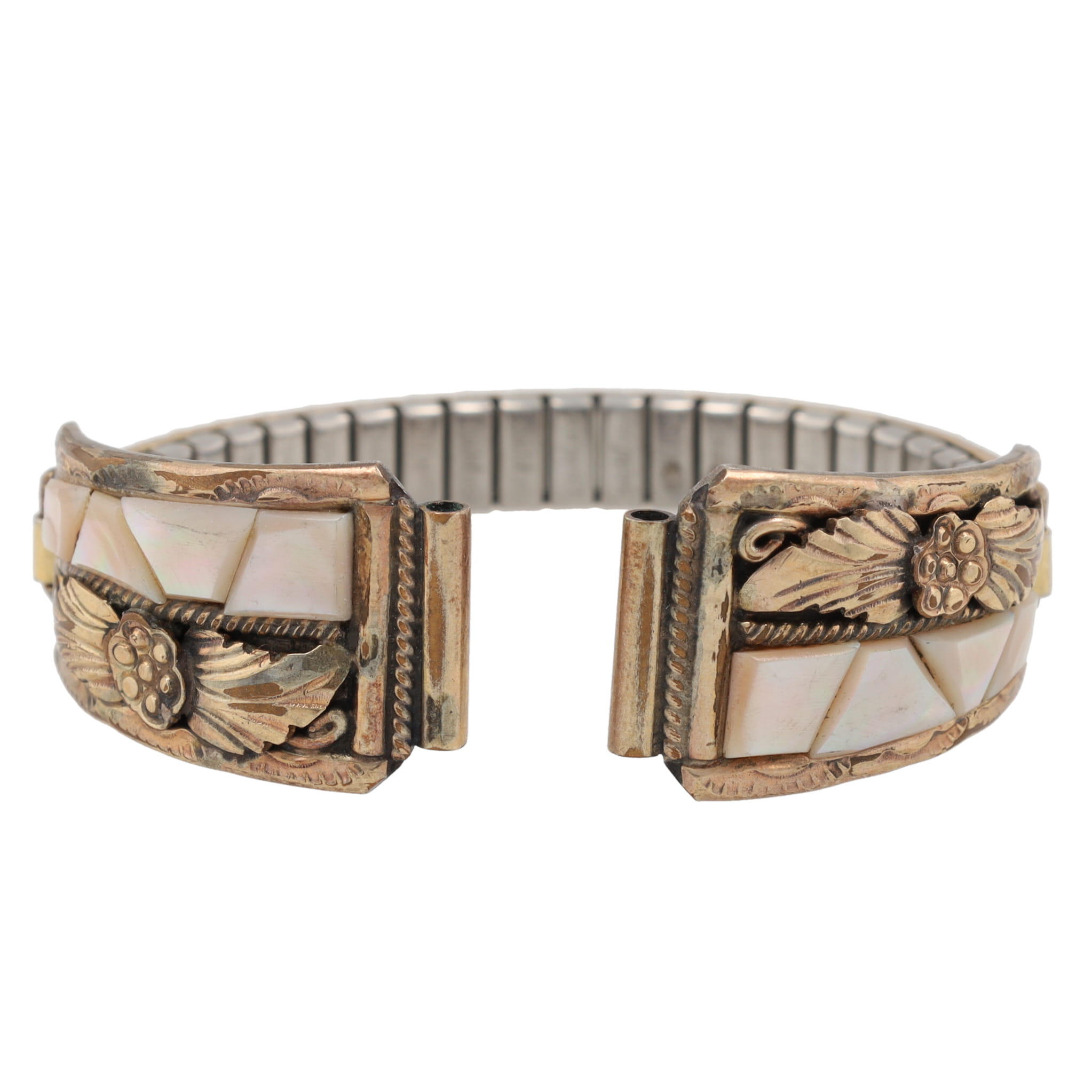 Silver Ray Navajo Mother of Pearl Sterling & Gold Fill Blossom Inlay Watch Nibs 14g
