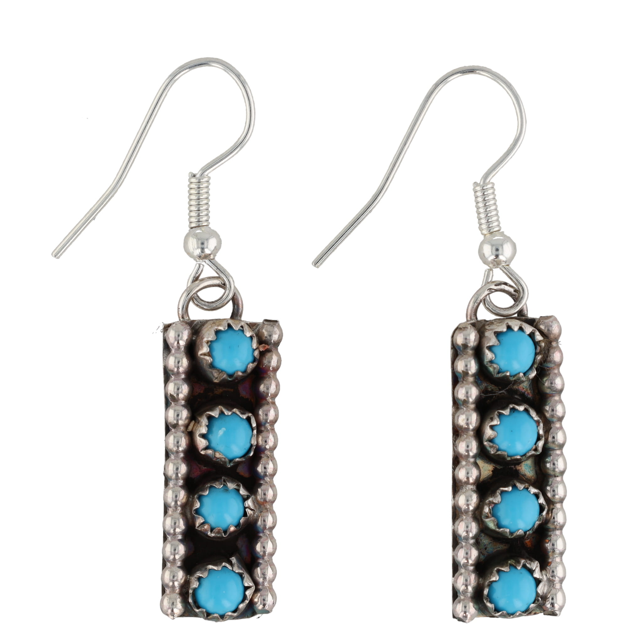 Janice Spencer Zuni Snake Eye Turquoise Sterling Hook Earrings 5g