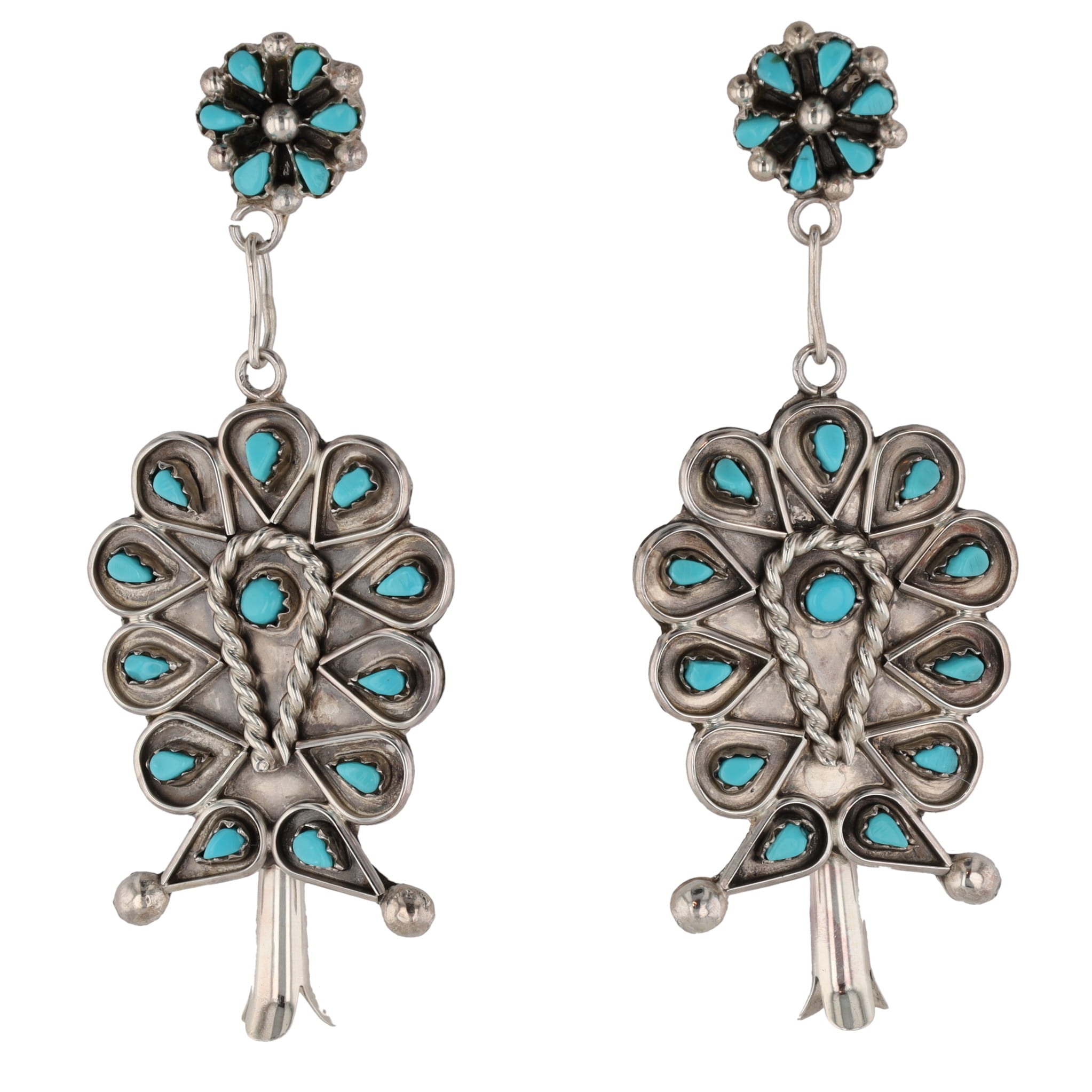 Tricia Leekity Zuni Kingman Turquoise Sterling Squash Blossom Earrings 16g