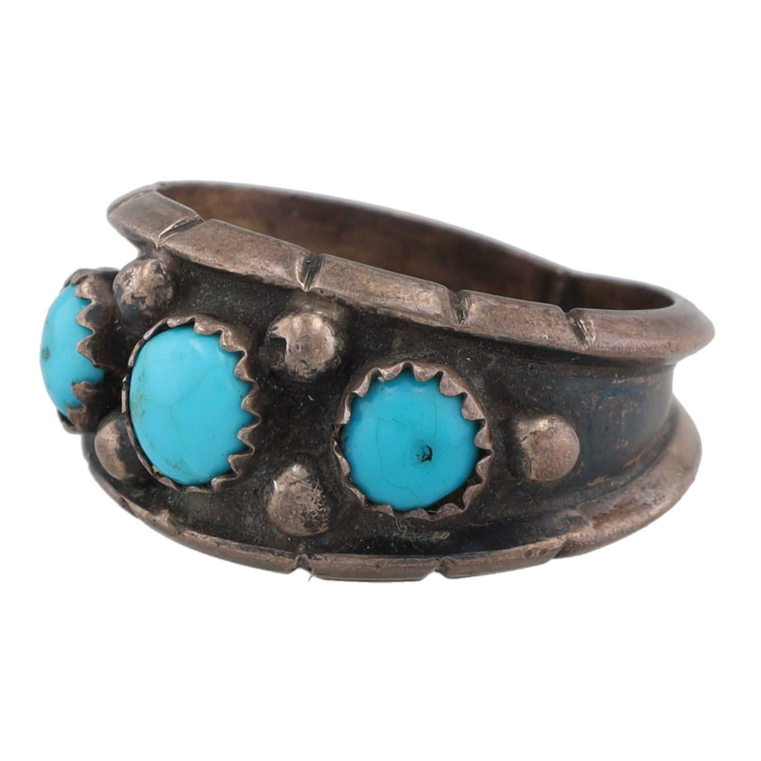 Milton Lasiloo Zuni Turquoise Sterling Ring Sz 10.25, 7g