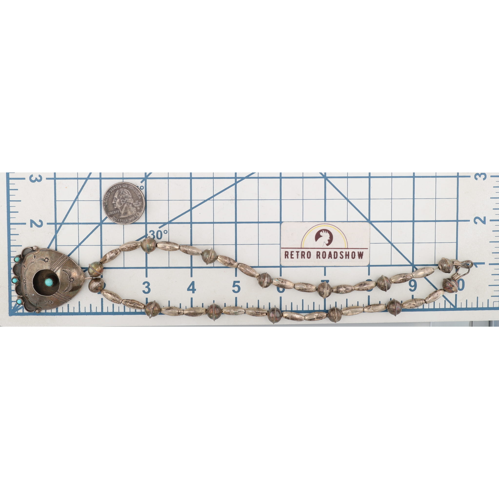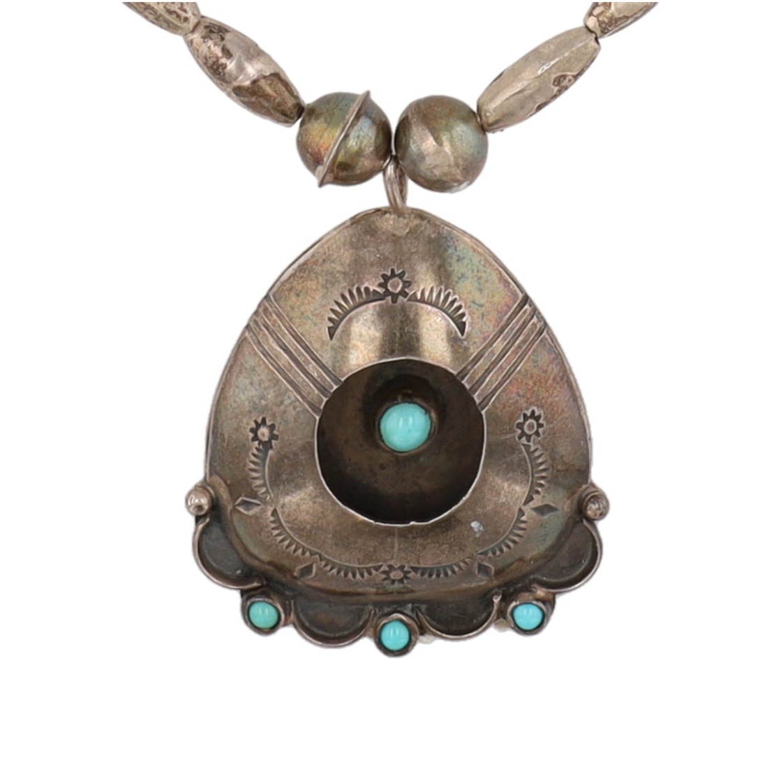 Vintage Navajo Turquoise Sterling Shadow Box Necklace 30g