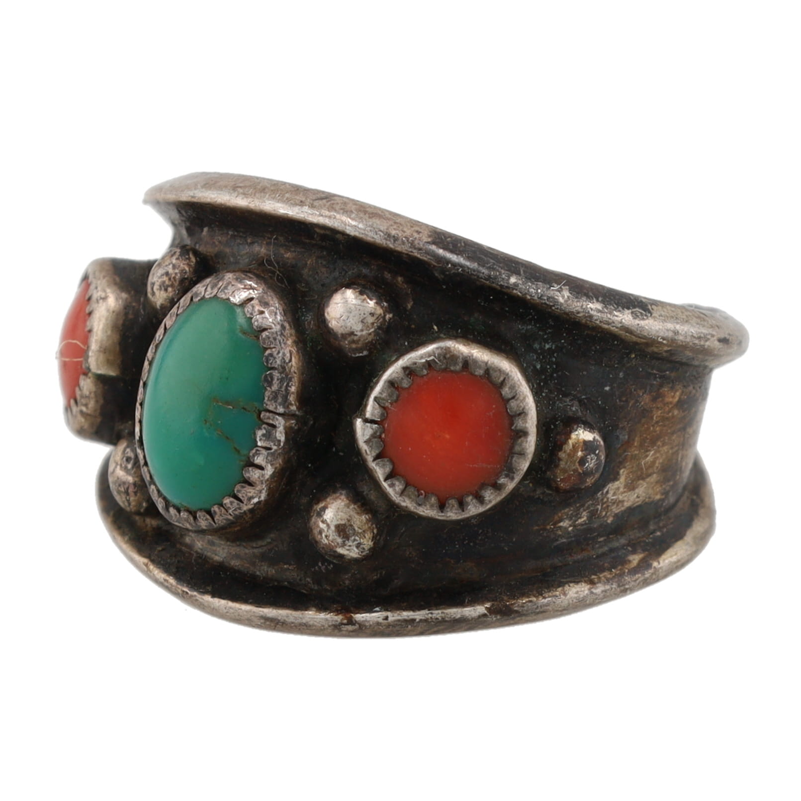 Vintage Navajo Turquoise Coral Sterling Ring Sz 8.5 As Is, 6.5g