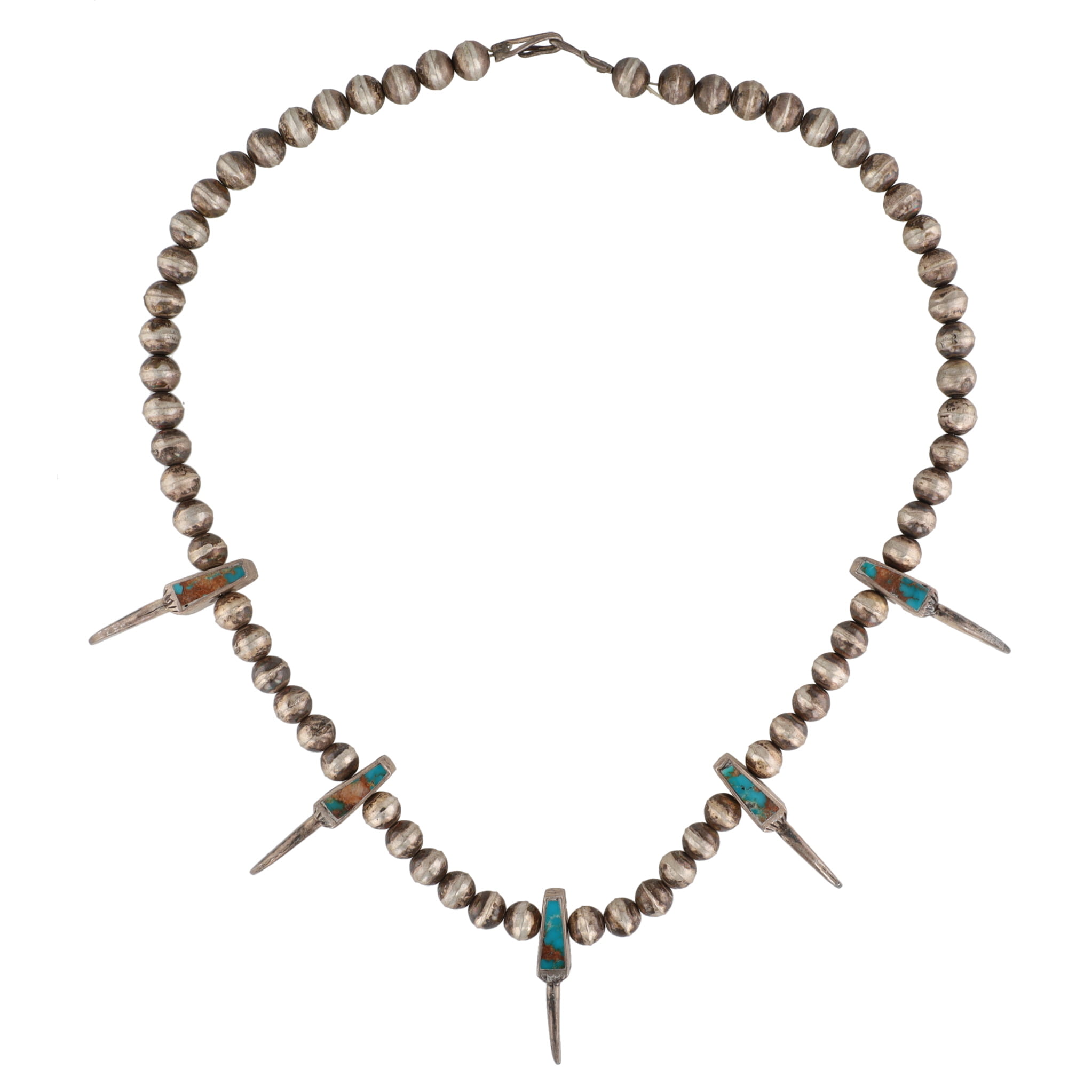 Vintage Navajo Turquoise Sterling Claw Beaded Necklace