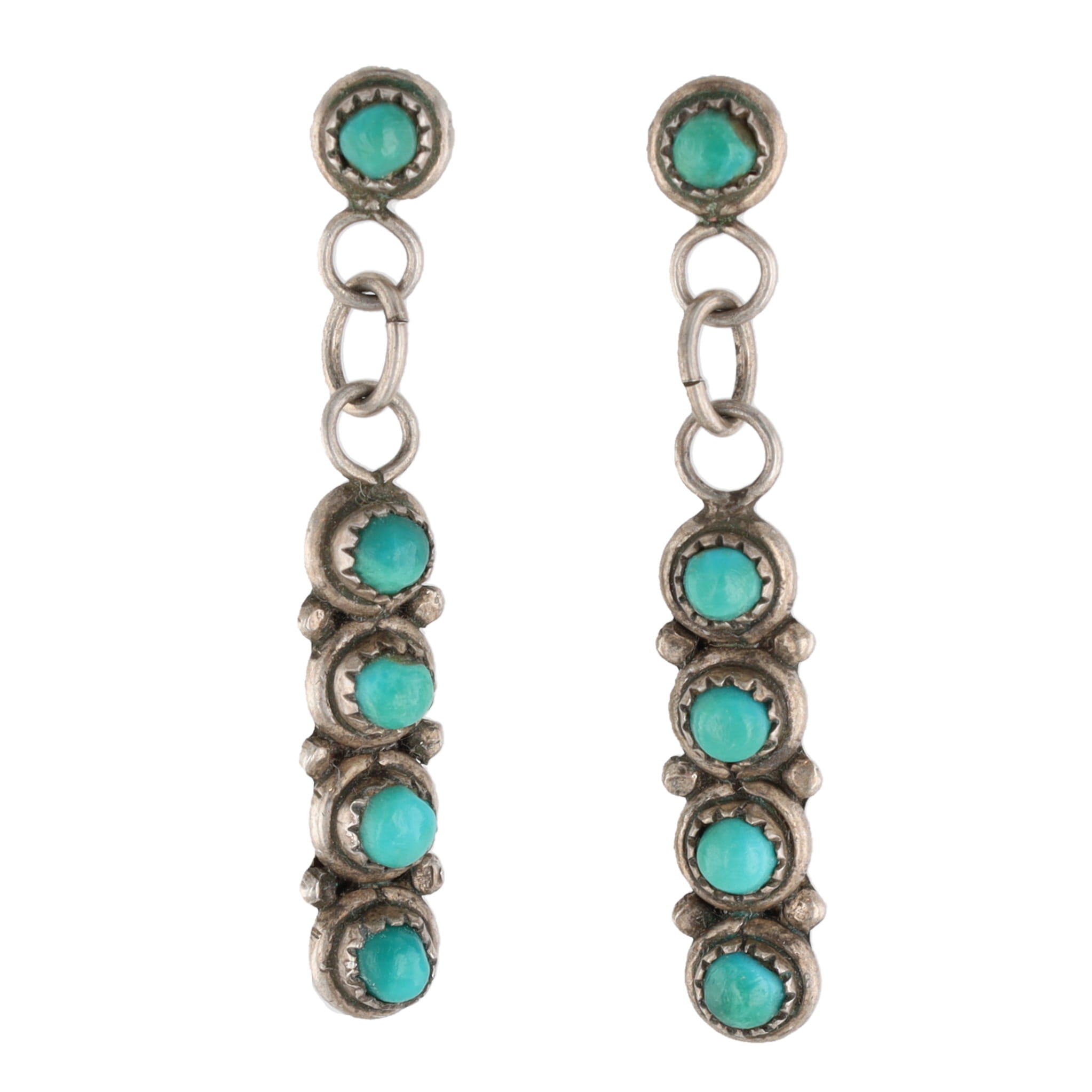 Vintage Zuni Turquoise Sterling Dangle Earrings 3g