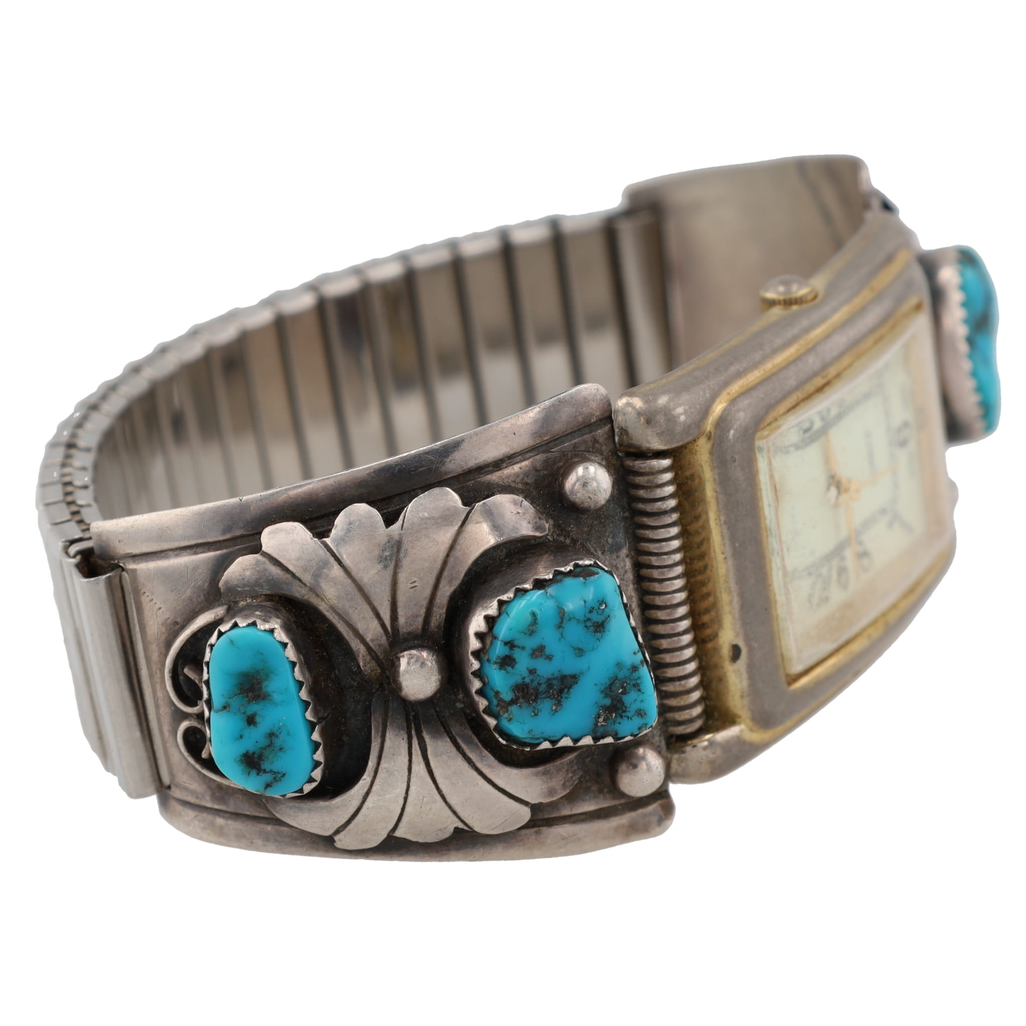 Signed TED Navajo Sterling Turquoise Watch 53.5g