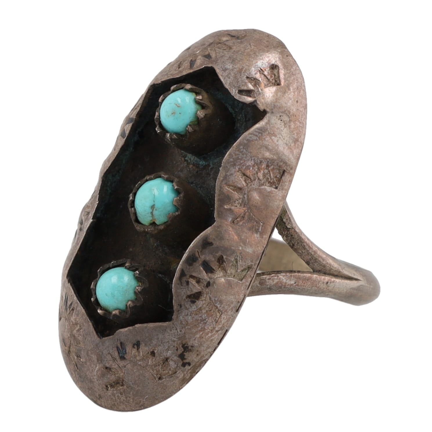 Vintage Navajo Turquoise Sterling Shadow Box Ring Sz 6.75, 4g