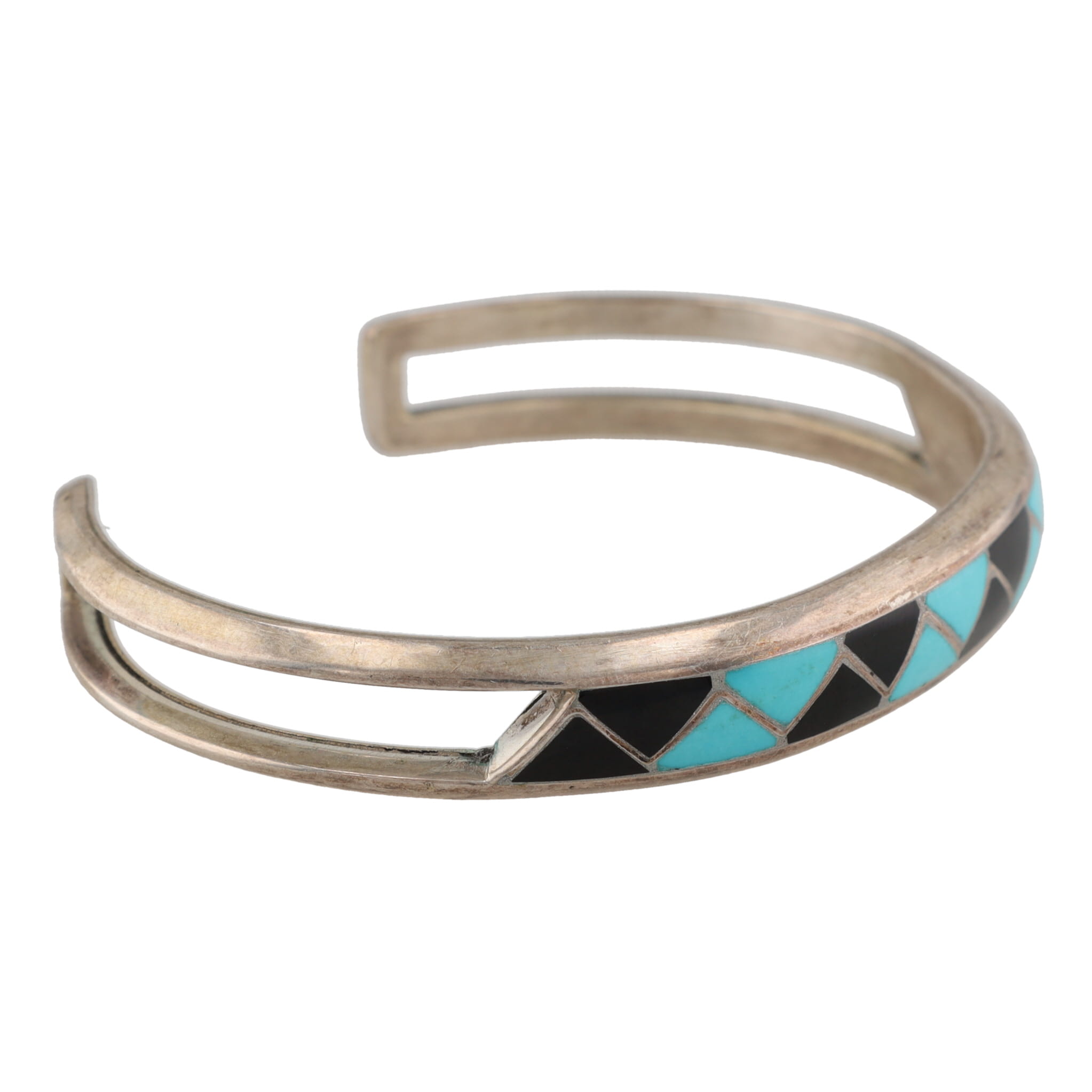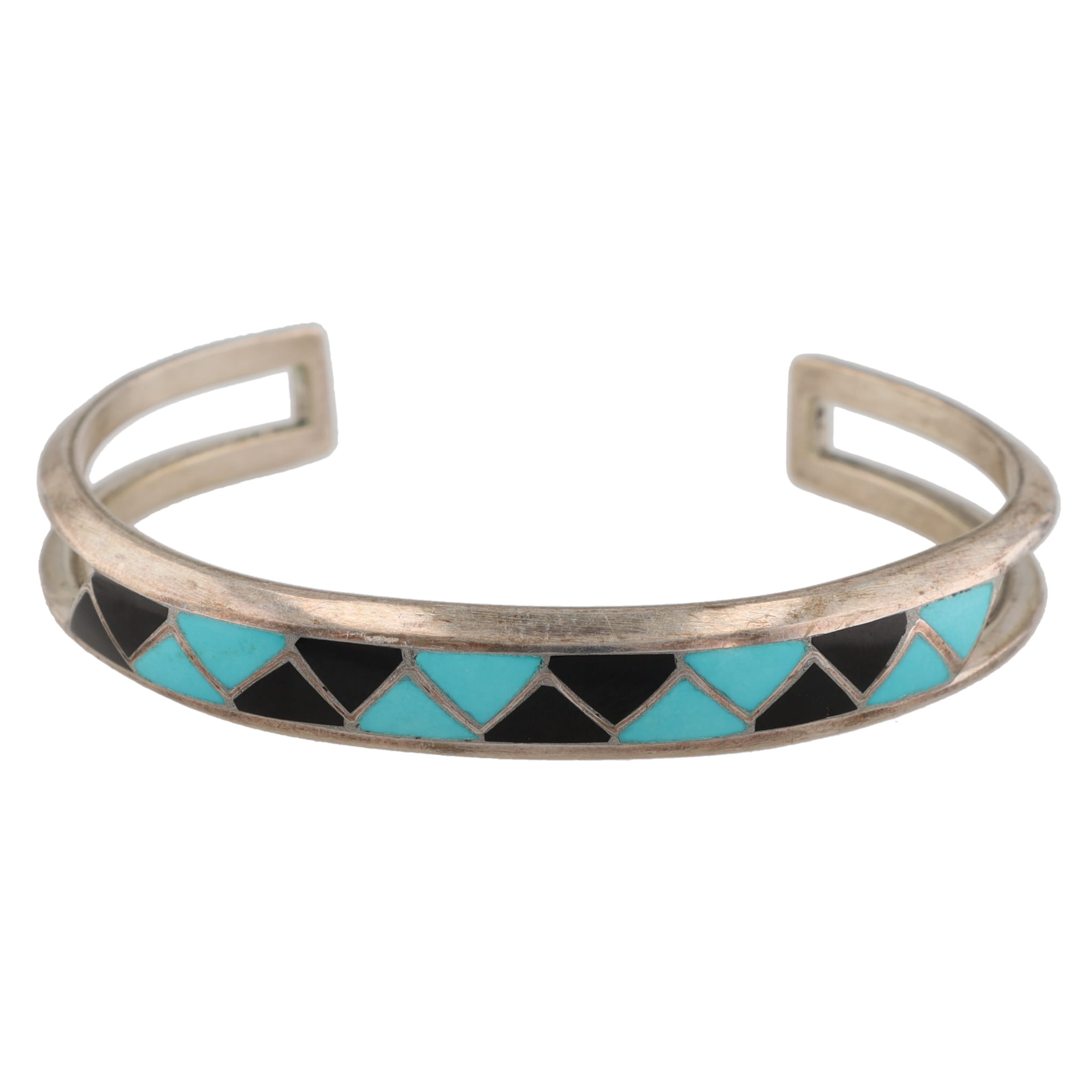 MKL Zuni Turquoise Onyx Inlay Sterling Cuff Bracelet 20g