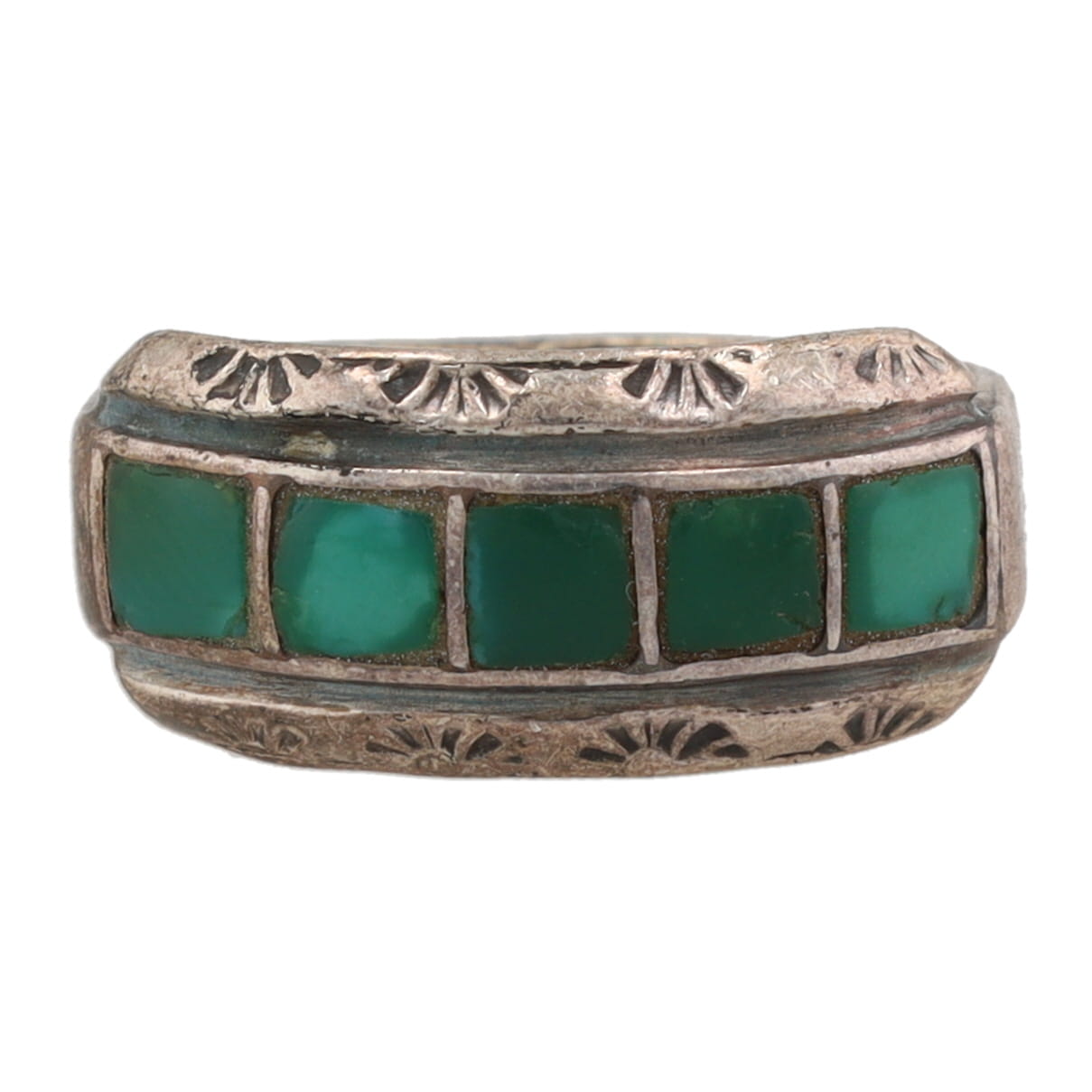 Old Pawn Navajo Malachite Inlay Sterling Ring Sz 6.25, 4g