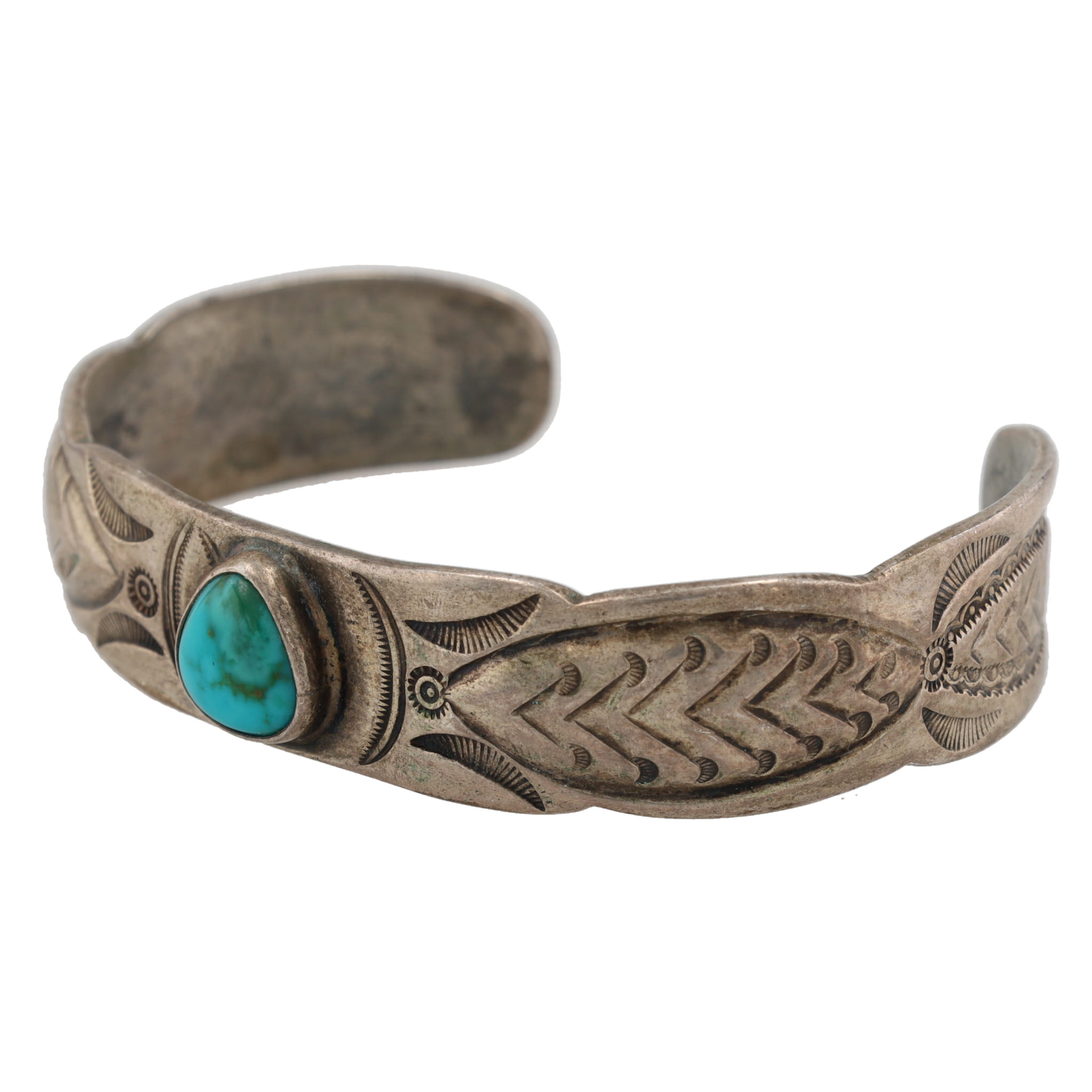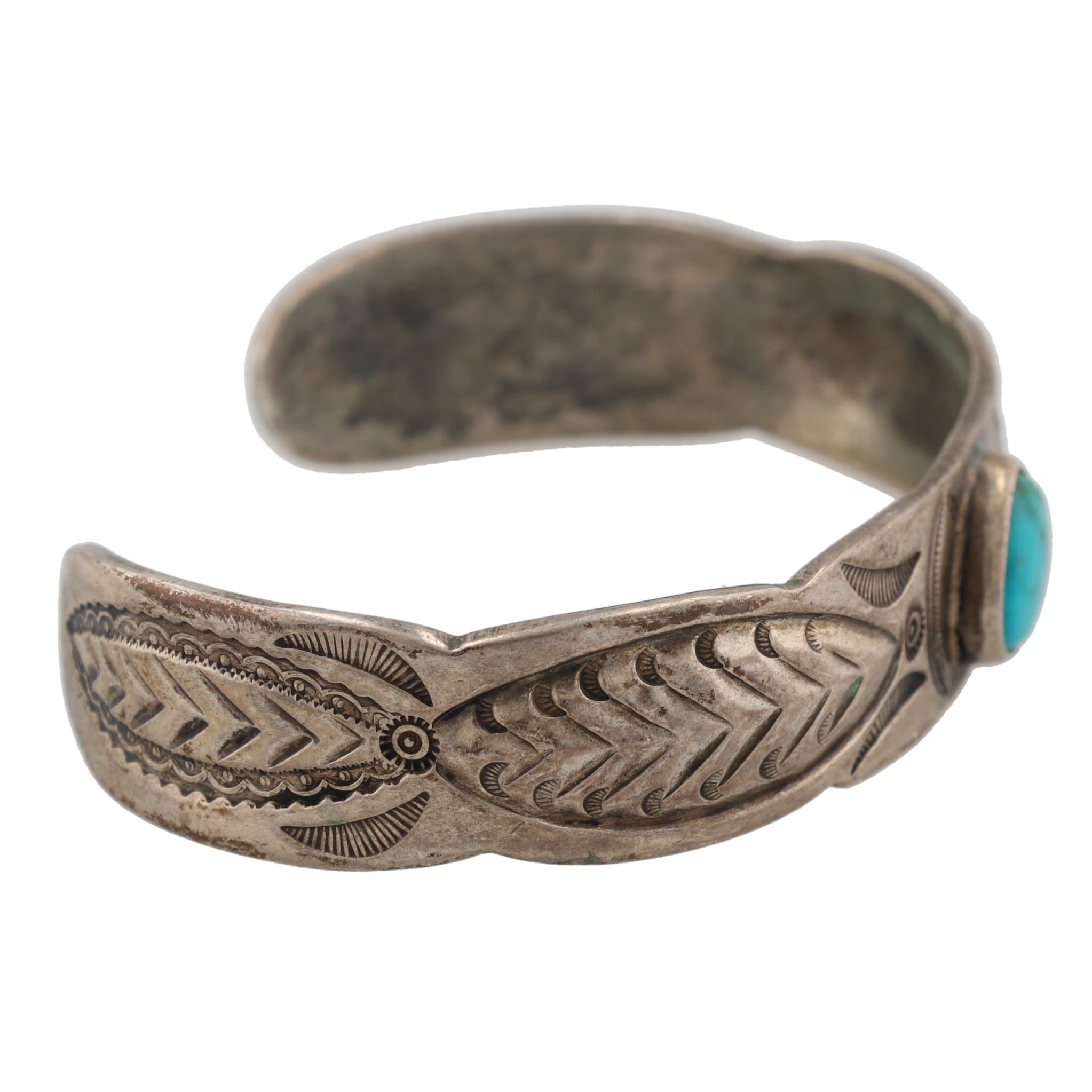 Vintage Navajo Turquoise Sterling Stamped Cuff Bracelet 29g