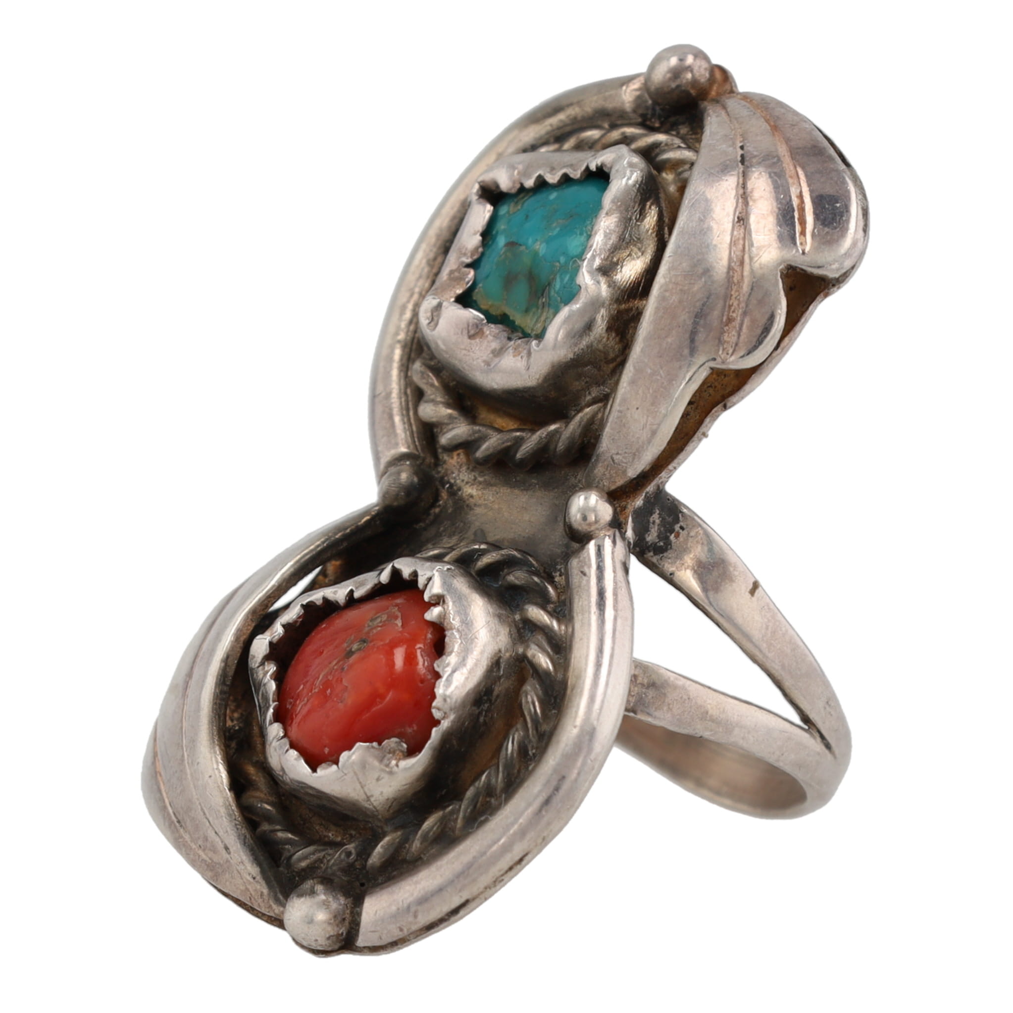 Gilbert Ortega Enterprises Coral Turquoise Sterling Ring Sz 6.75, 11g
