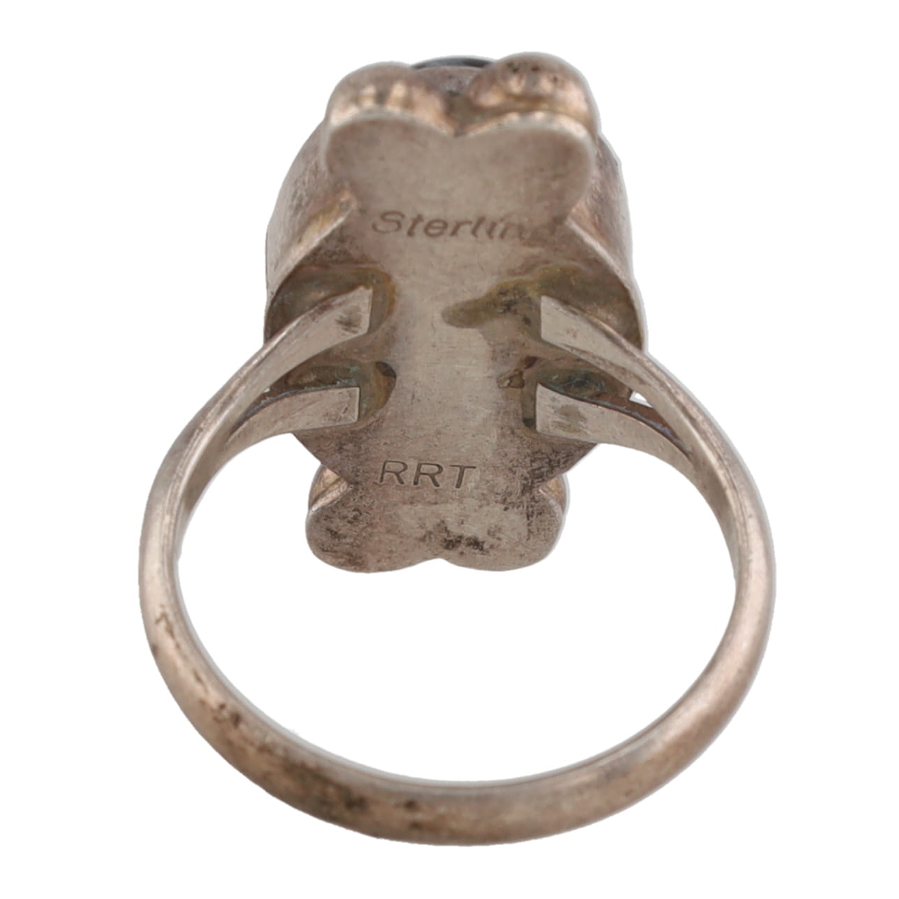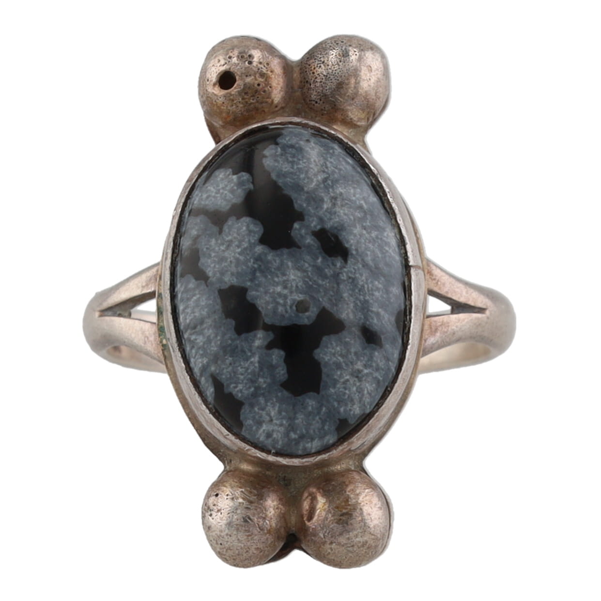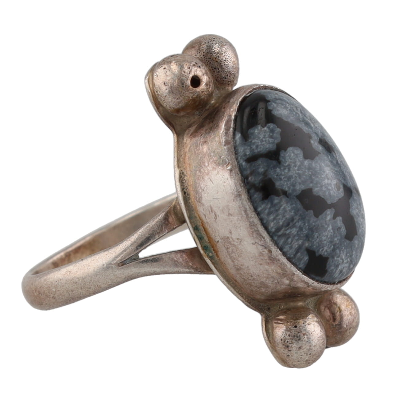 Signed RRT Navajo Snowflake Obsidian Sterling Ring Sz 5.75, 5g