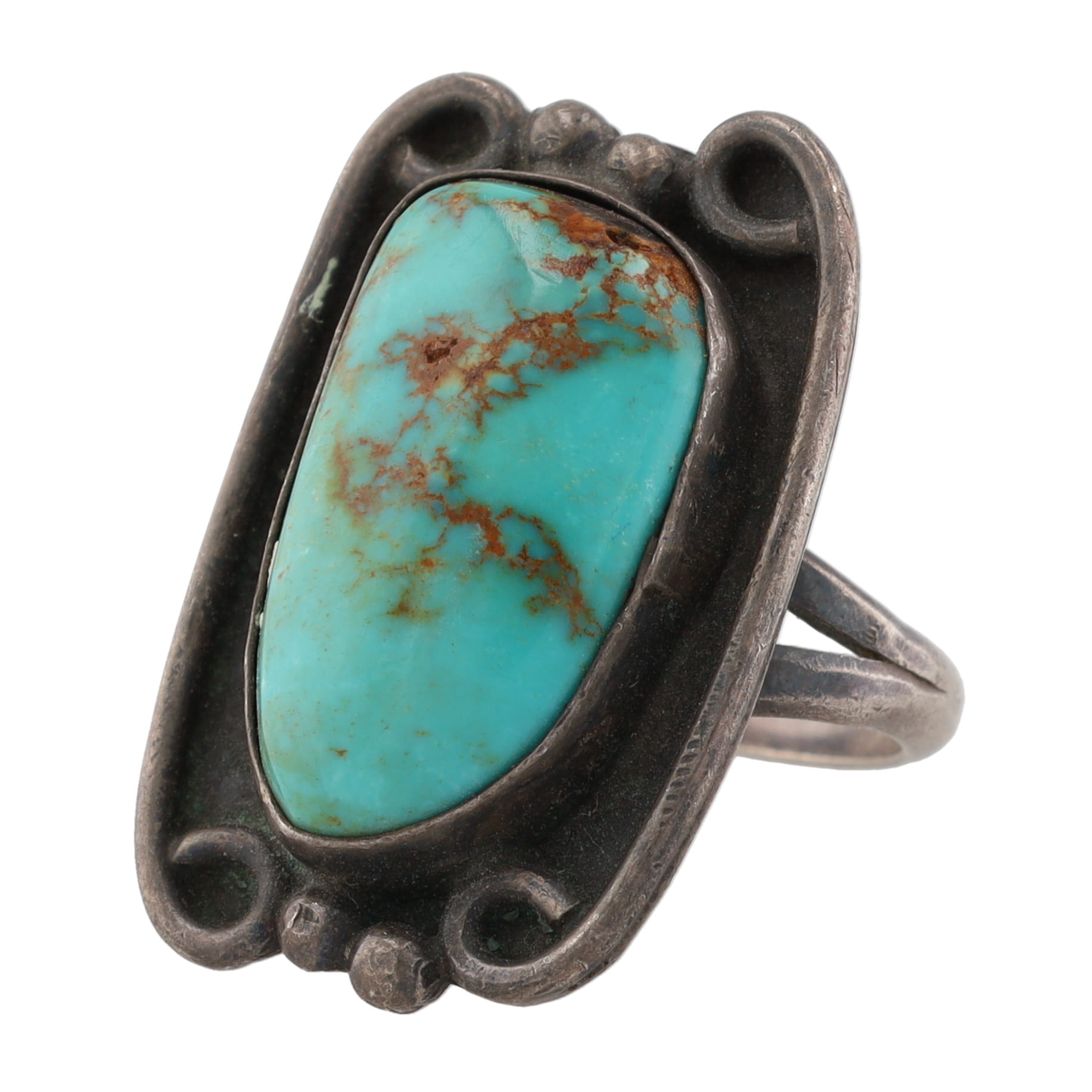 L. Burnside Navajo Turquoise Sterling Ring Sz 7, 8g
