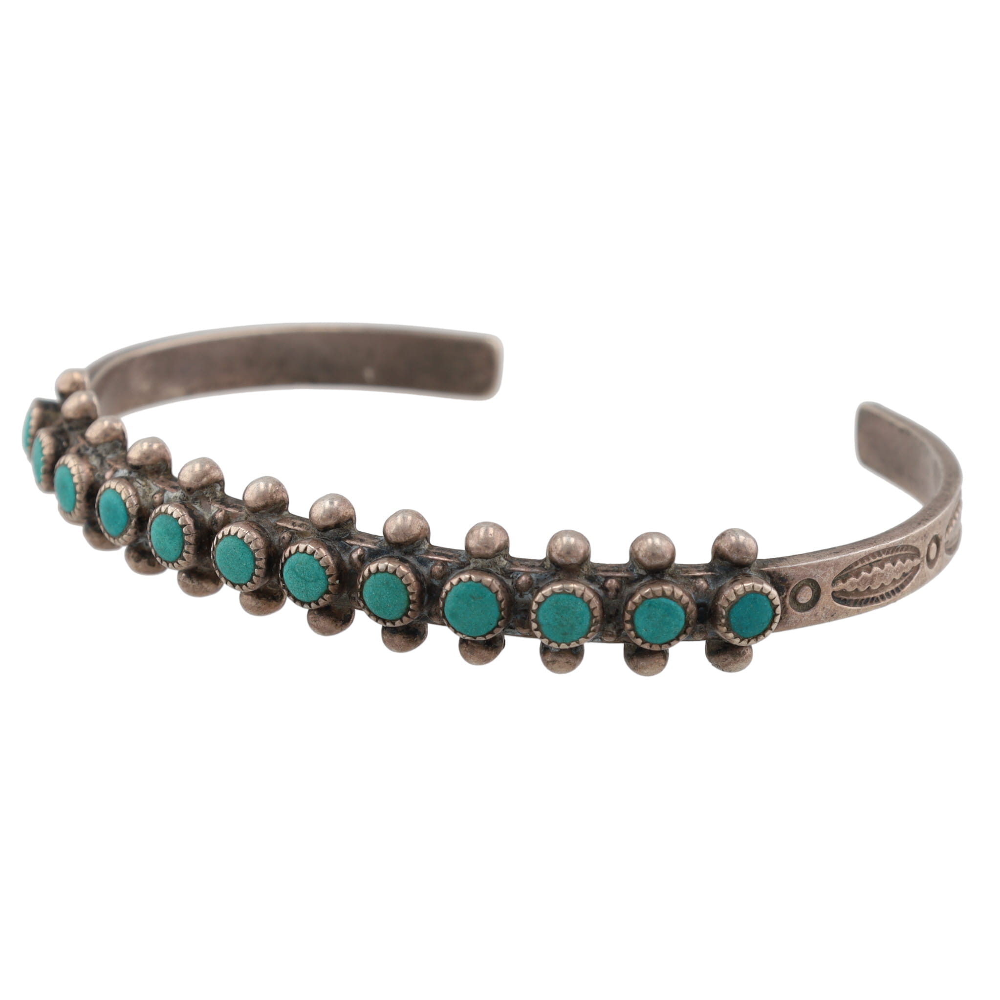 Vintage Navajo Green Turquoise Sterling Cuff Bracelet 14g