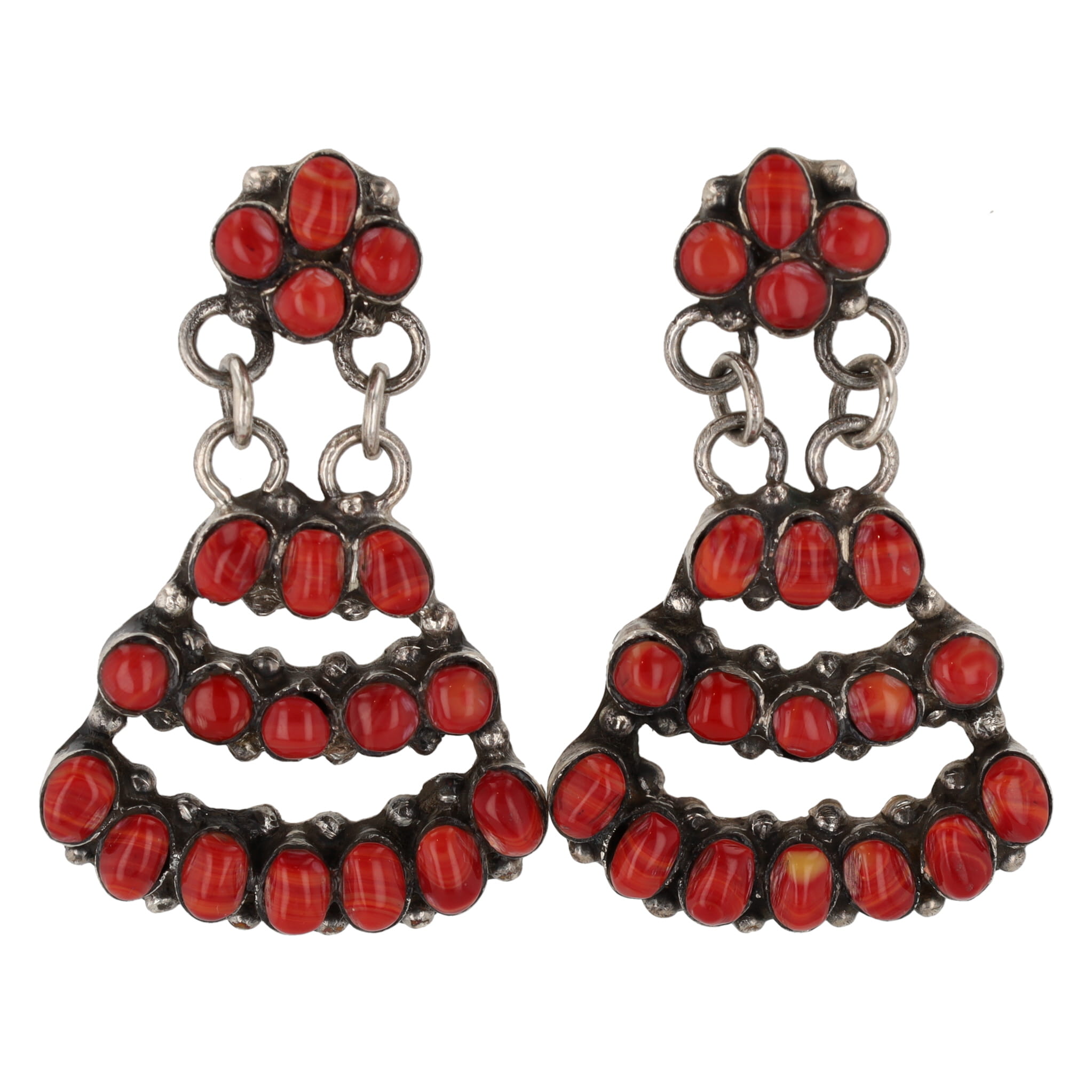 Vintage Navajo Coral Sterling Dangle Earrings 16.5g