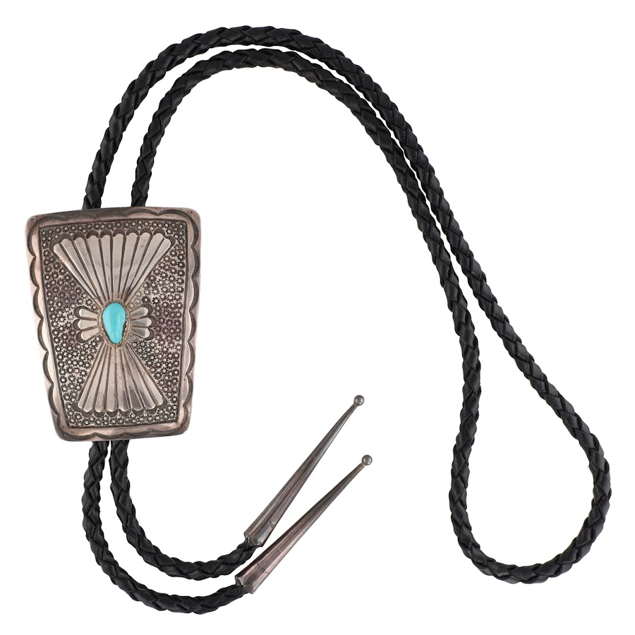 Vintage Navajo Turquoise Sterling Stamped Bolo Tie 41g