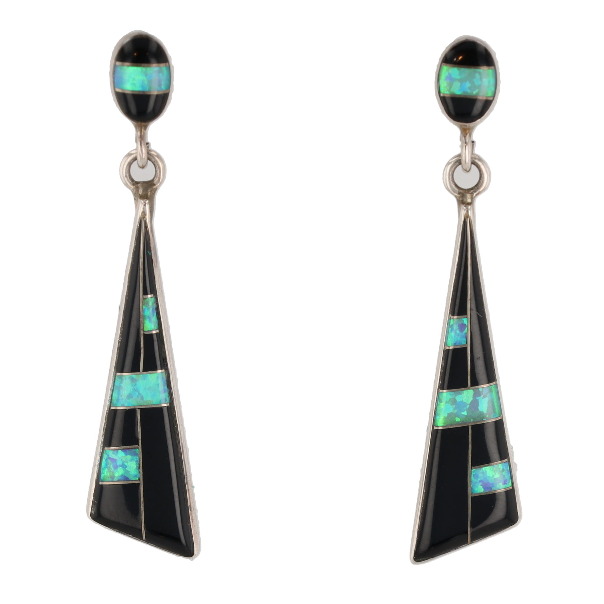 Signed MY Zuni Opal Onyx Sterling Inlay Earrings 4g