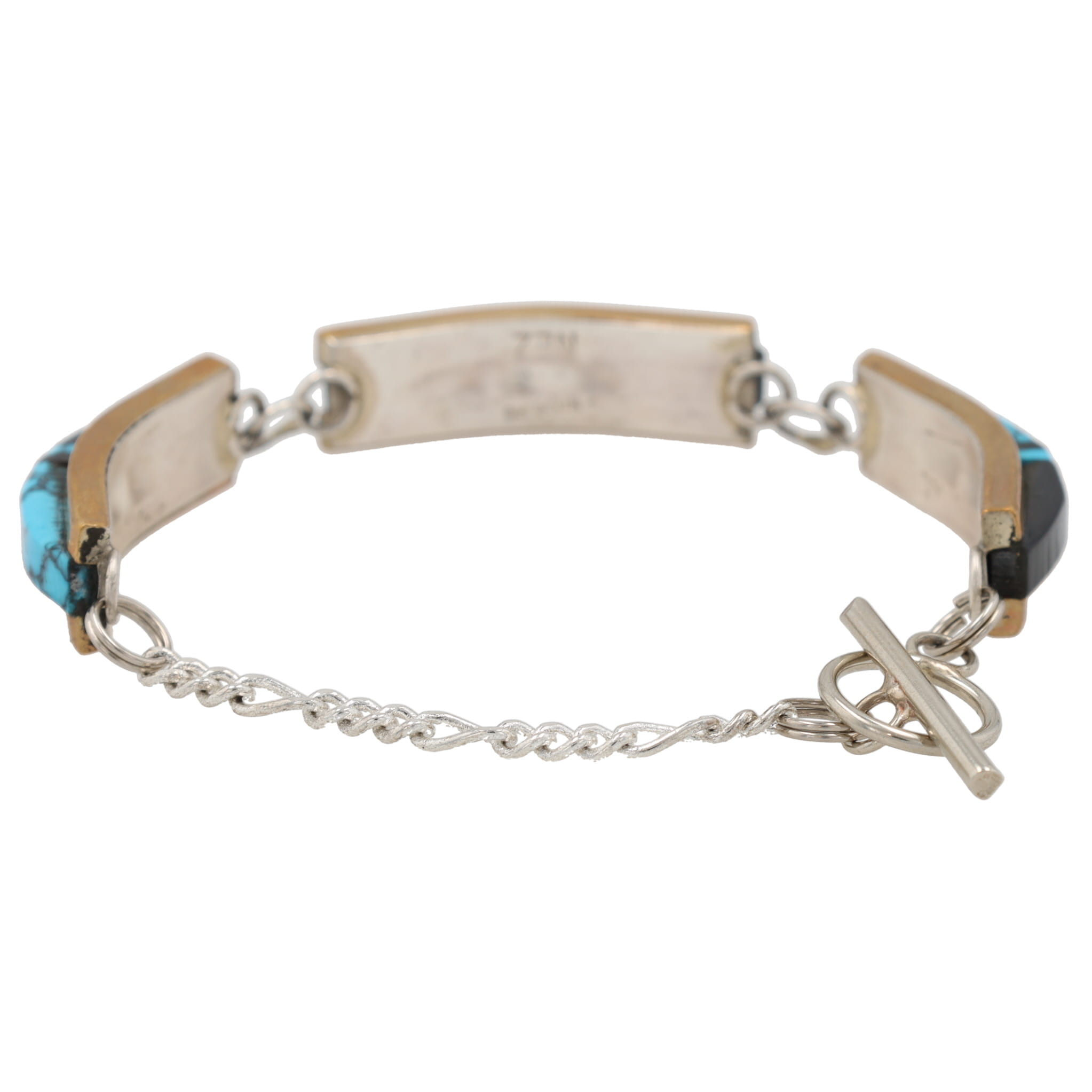 Signed NEZ Navajo Raised Inlay Toggle Clasp Bracelet 17g