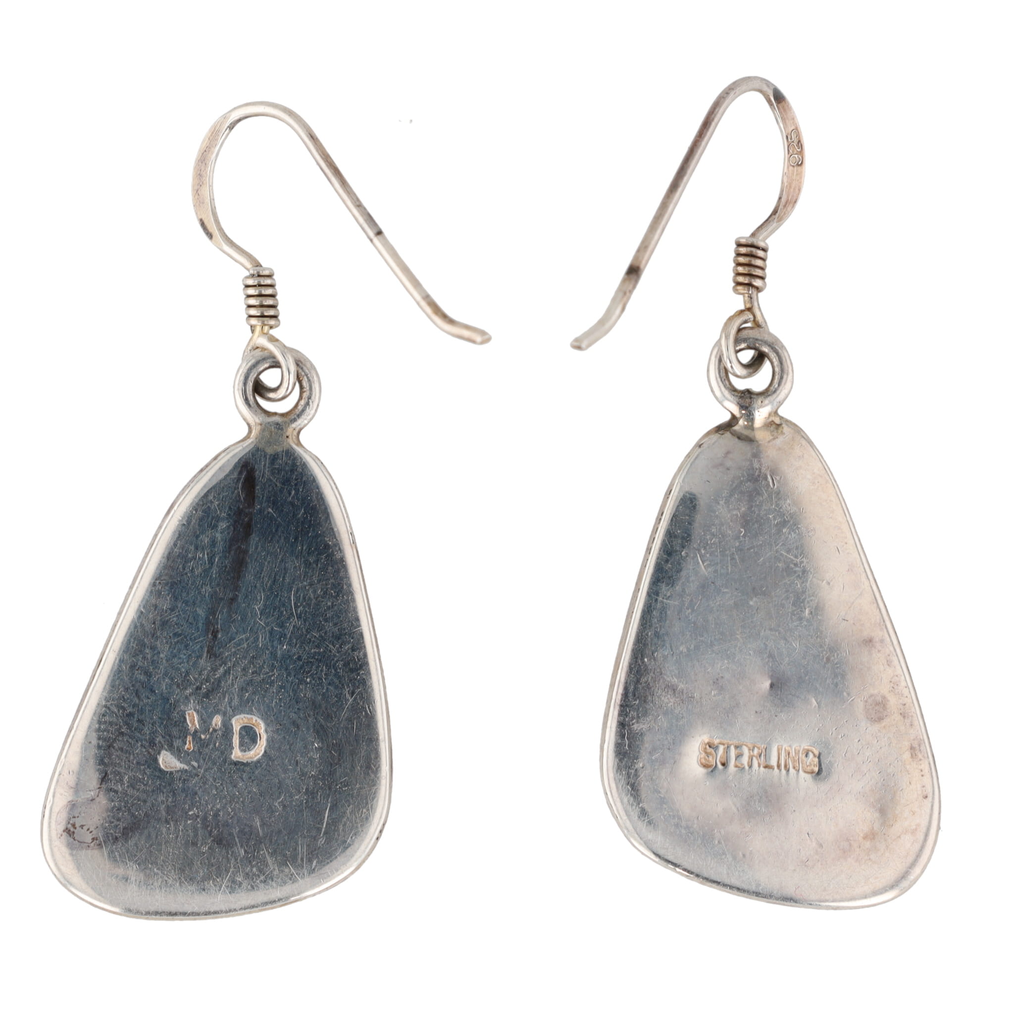 Signed MD Navajo White Buffalo Turquoise Opal Sterling Inlay Earrings