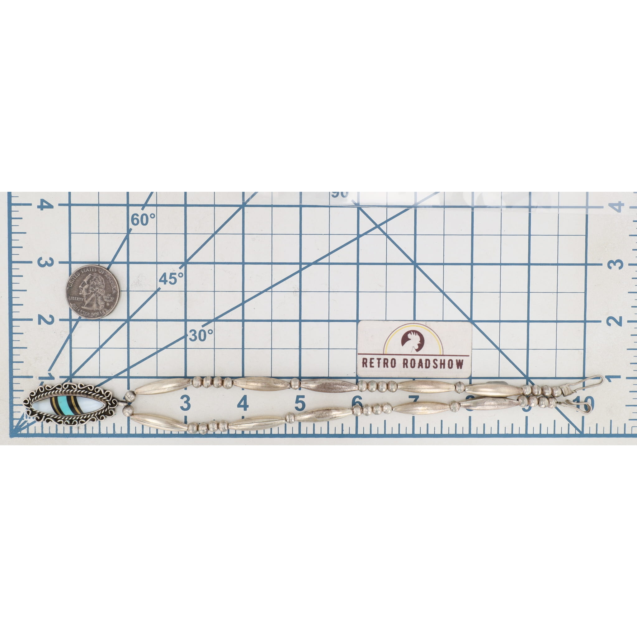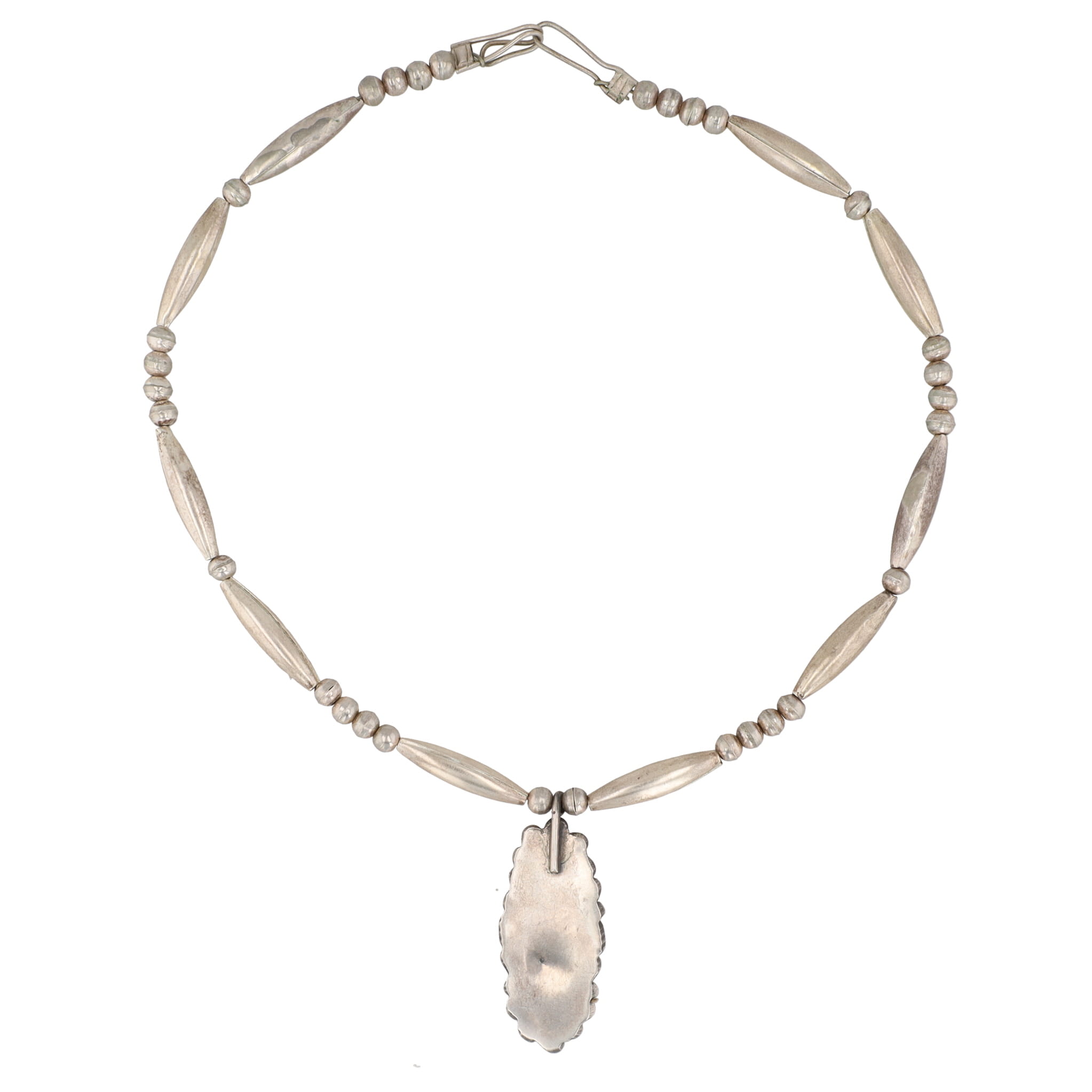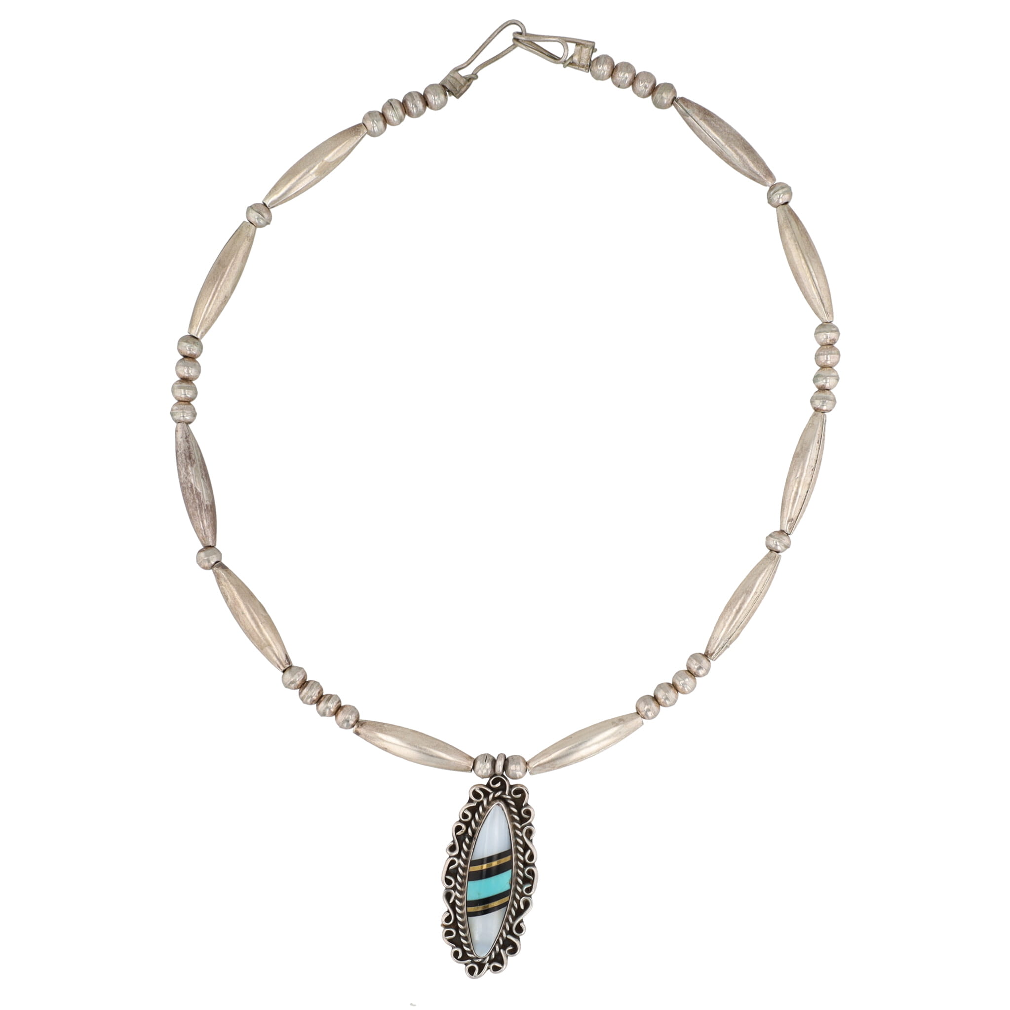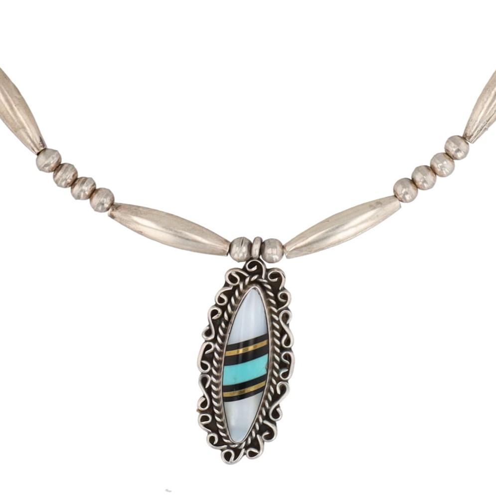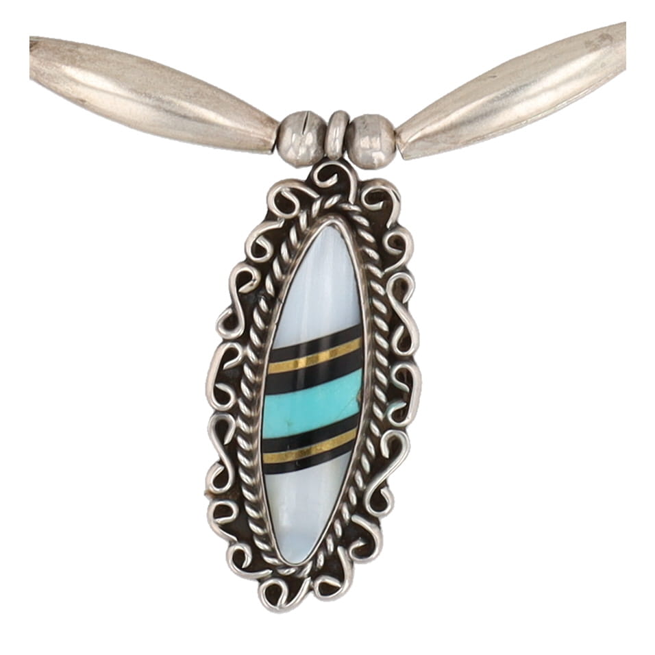 Vintage Navajo Mother of Pearl Turquoise Onyx Sterling Inlay Necklace 21g