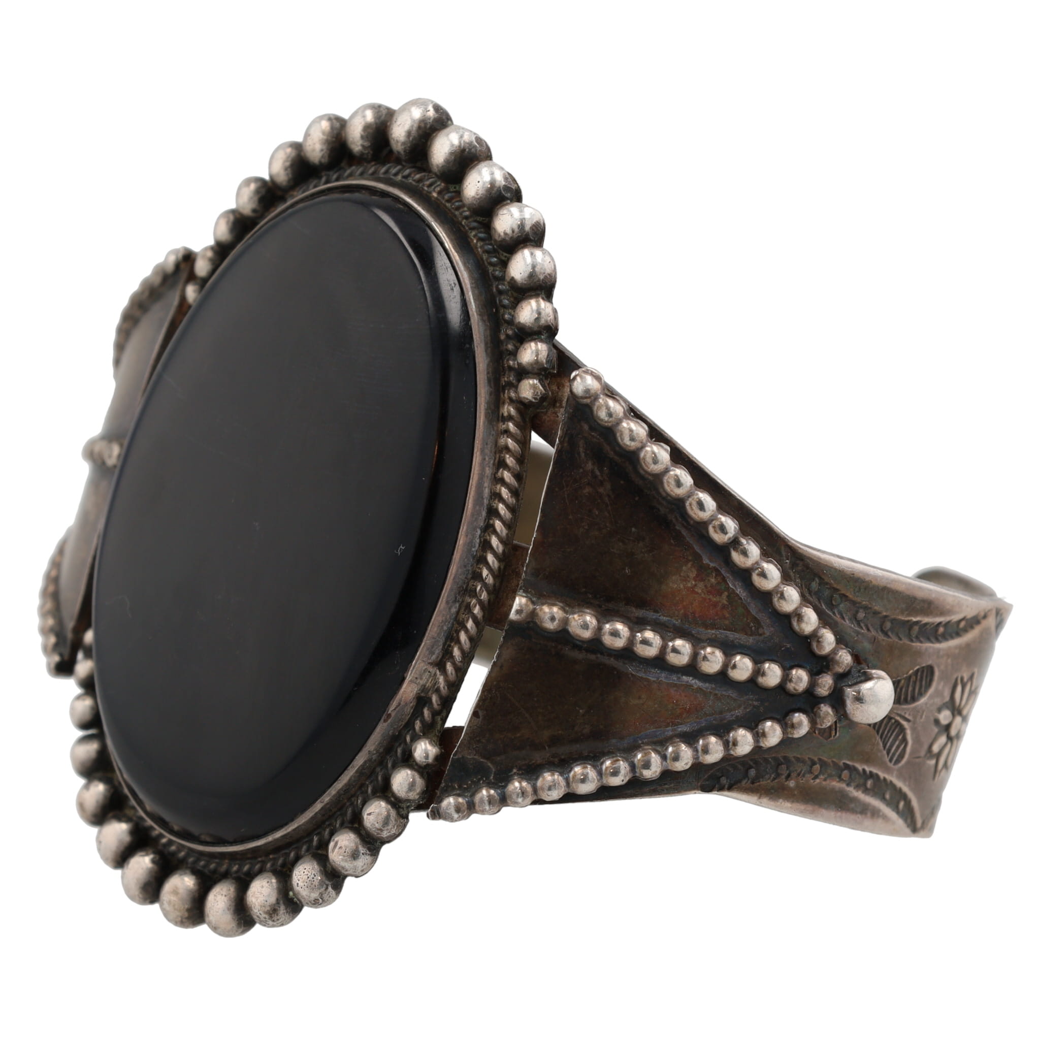 Pictomark Signed Navajo Onyx Sterling Cuff Bracelet 54g