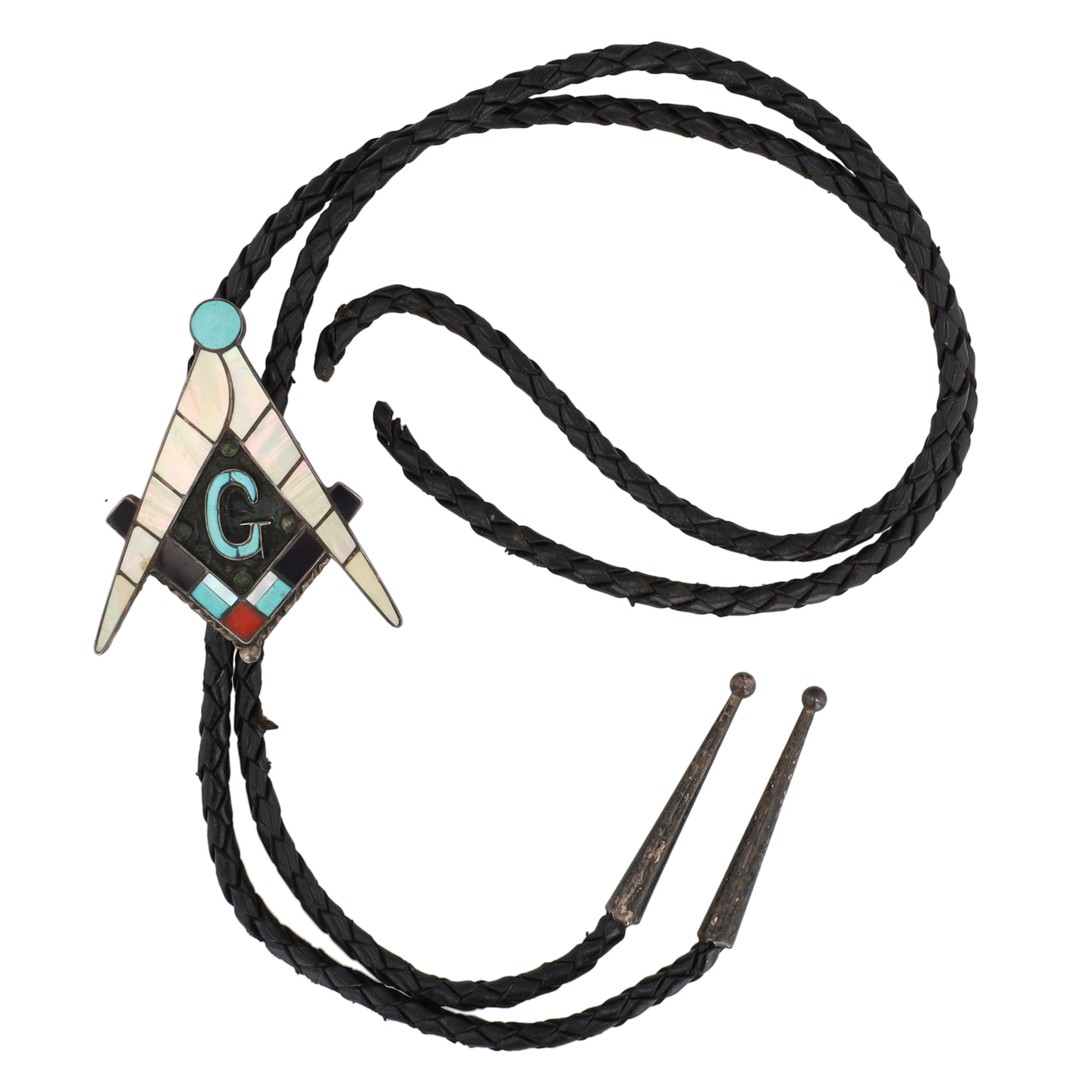Willford & Lena Quandelacy Zuni Masonic Inlay Bolo Tie 26.5g
