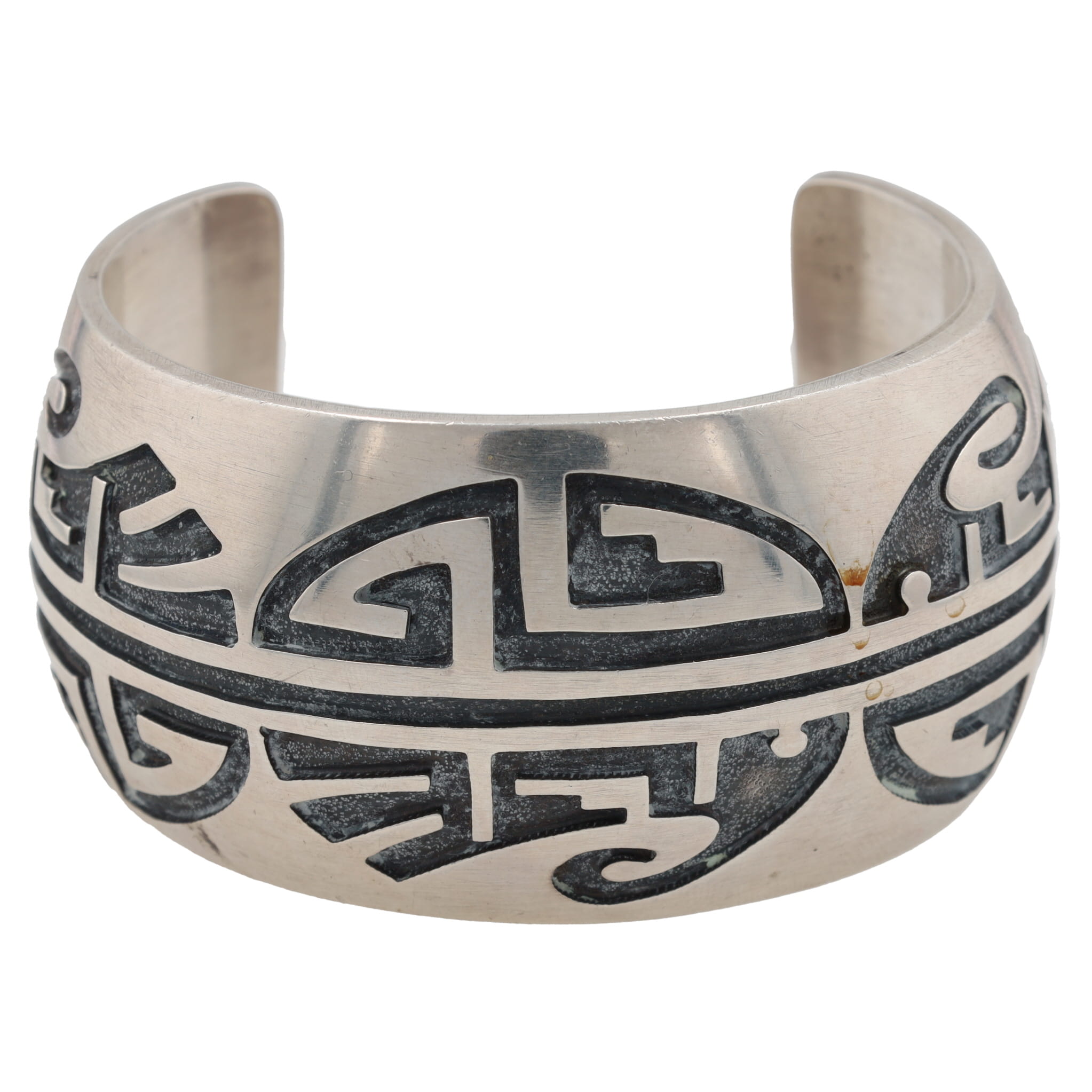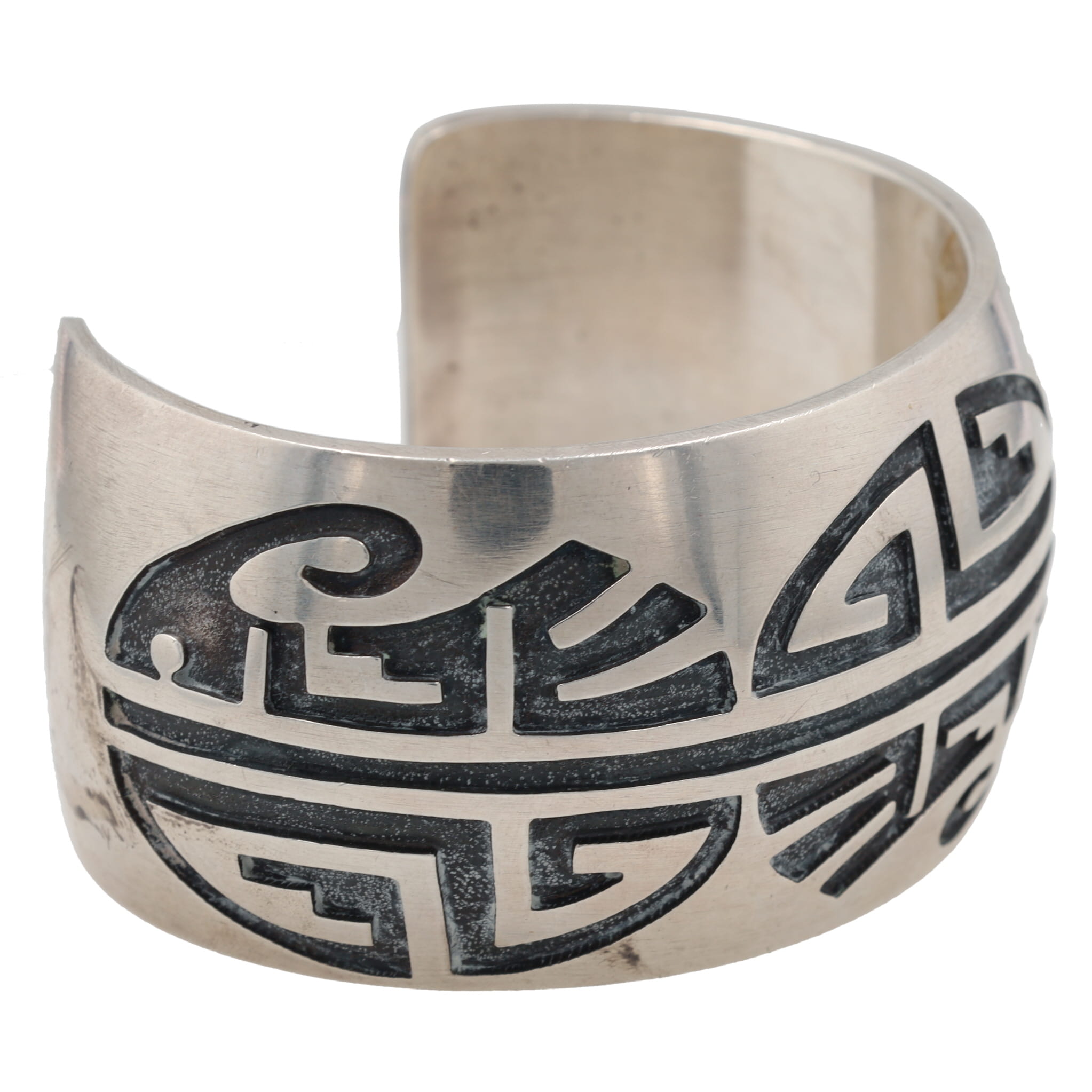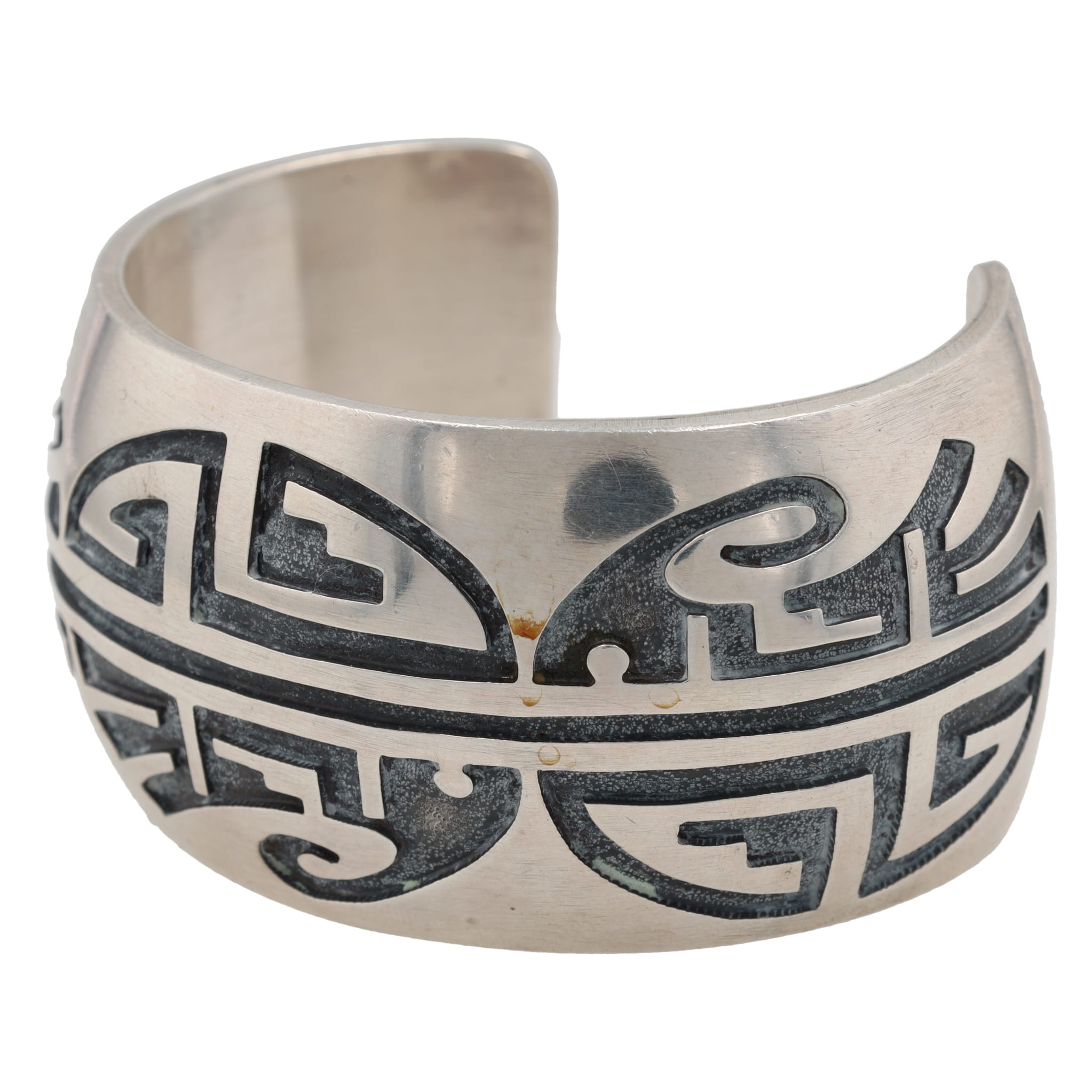 Signed DN Hopi Sterling Overlay Cuff Bracelet 88g