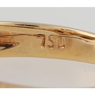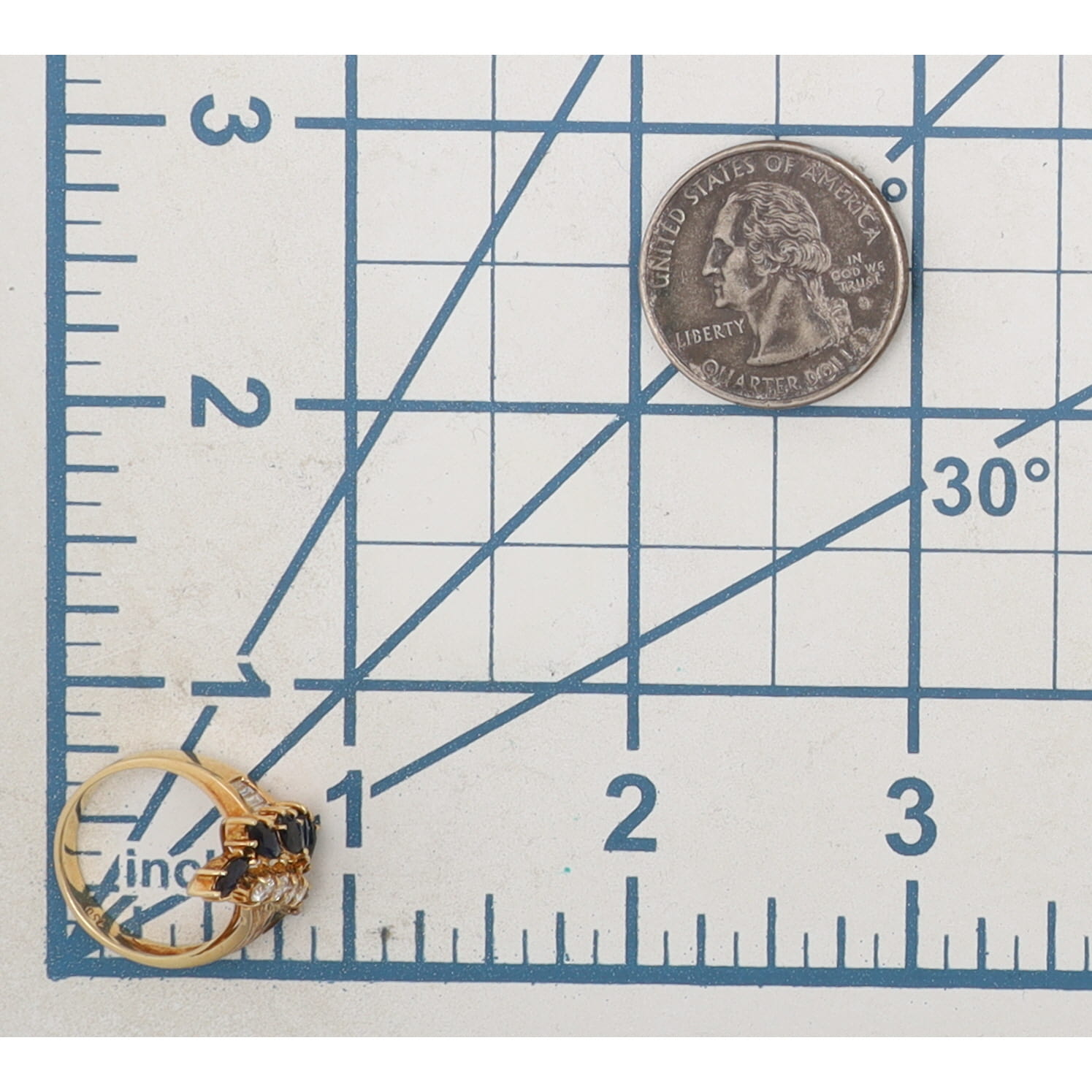 18K Gold Ring with Diamond and Sapphires, Marked 750. Weight, 4.7g. 5 Marquise Cut Sapphires, .6 carats and 6 Brilliant Cut Diamond, roughly .26 carats. Sz 6.75