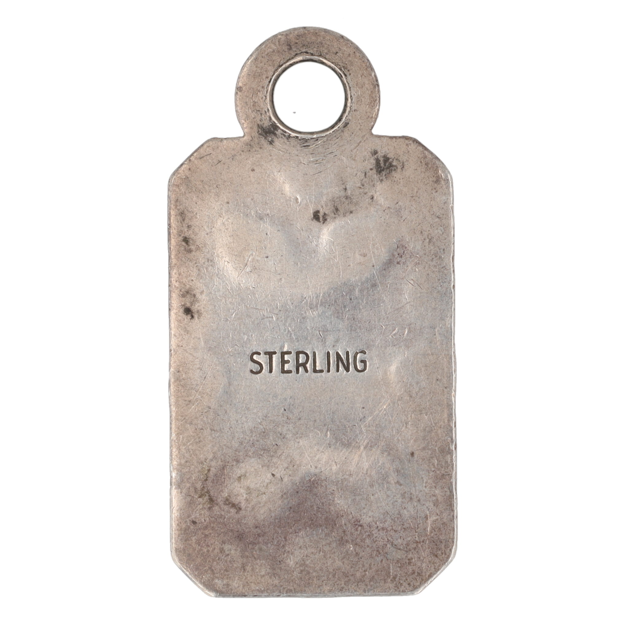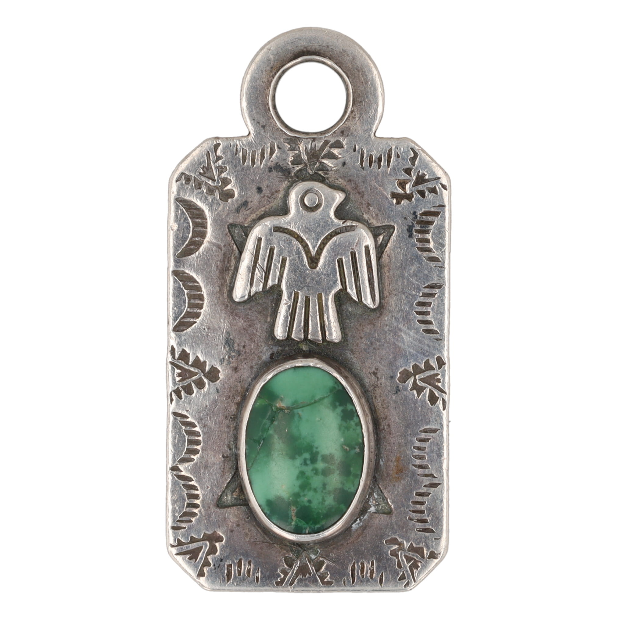 Wonderful Navajo Dog Tag Pendant with Green Turquoise & Thunderbird, Marked STERLING 3.5g