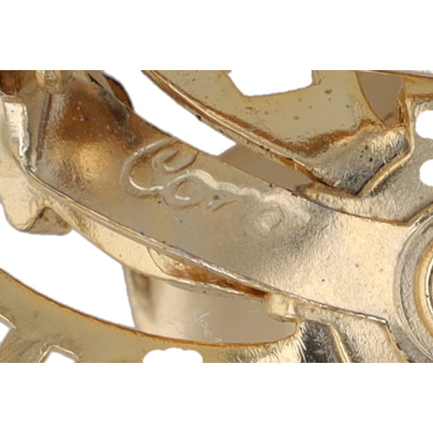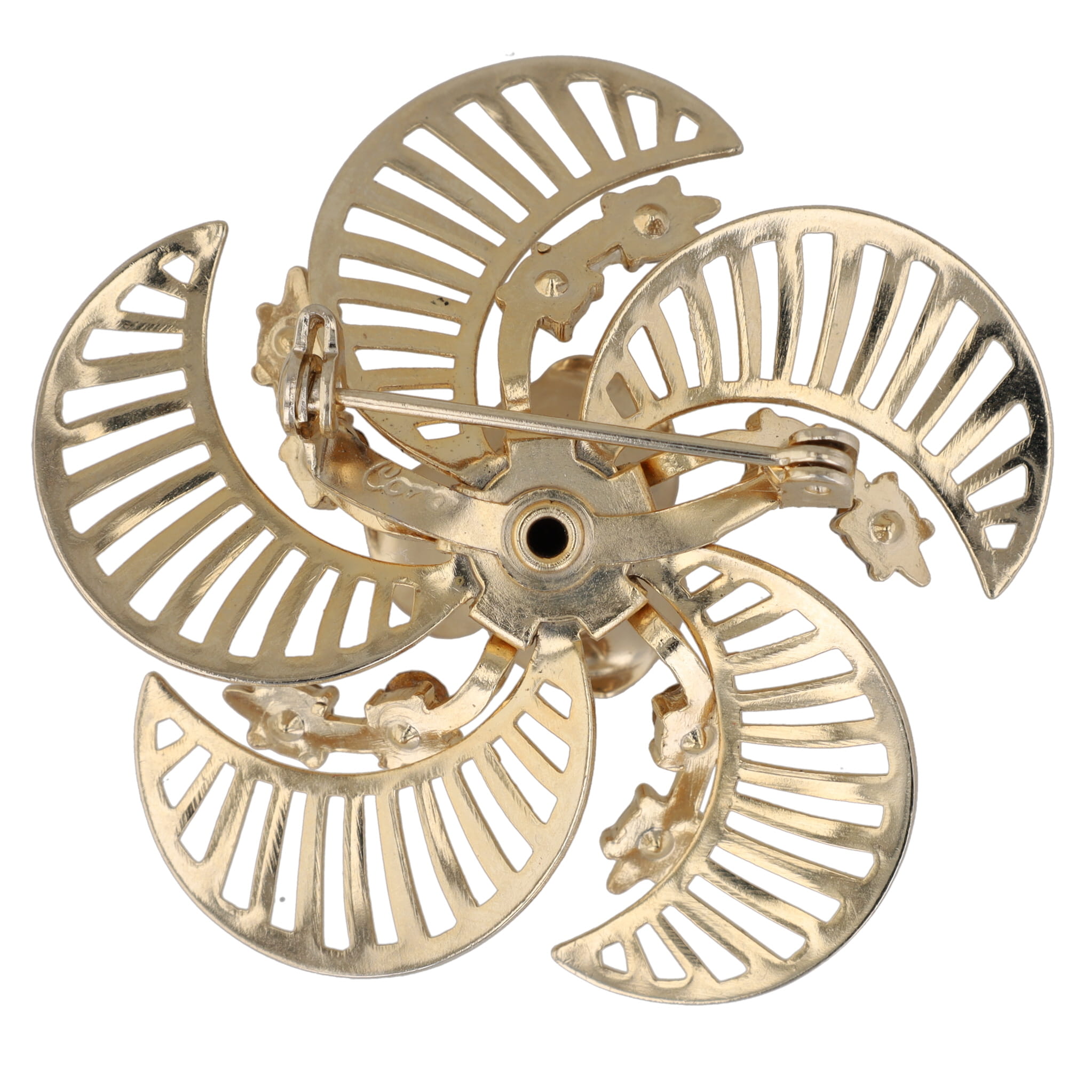 Highly collectible vintage Coro brooch, signed. Gold tone, spiral brooch with floral motif and rhinestones.