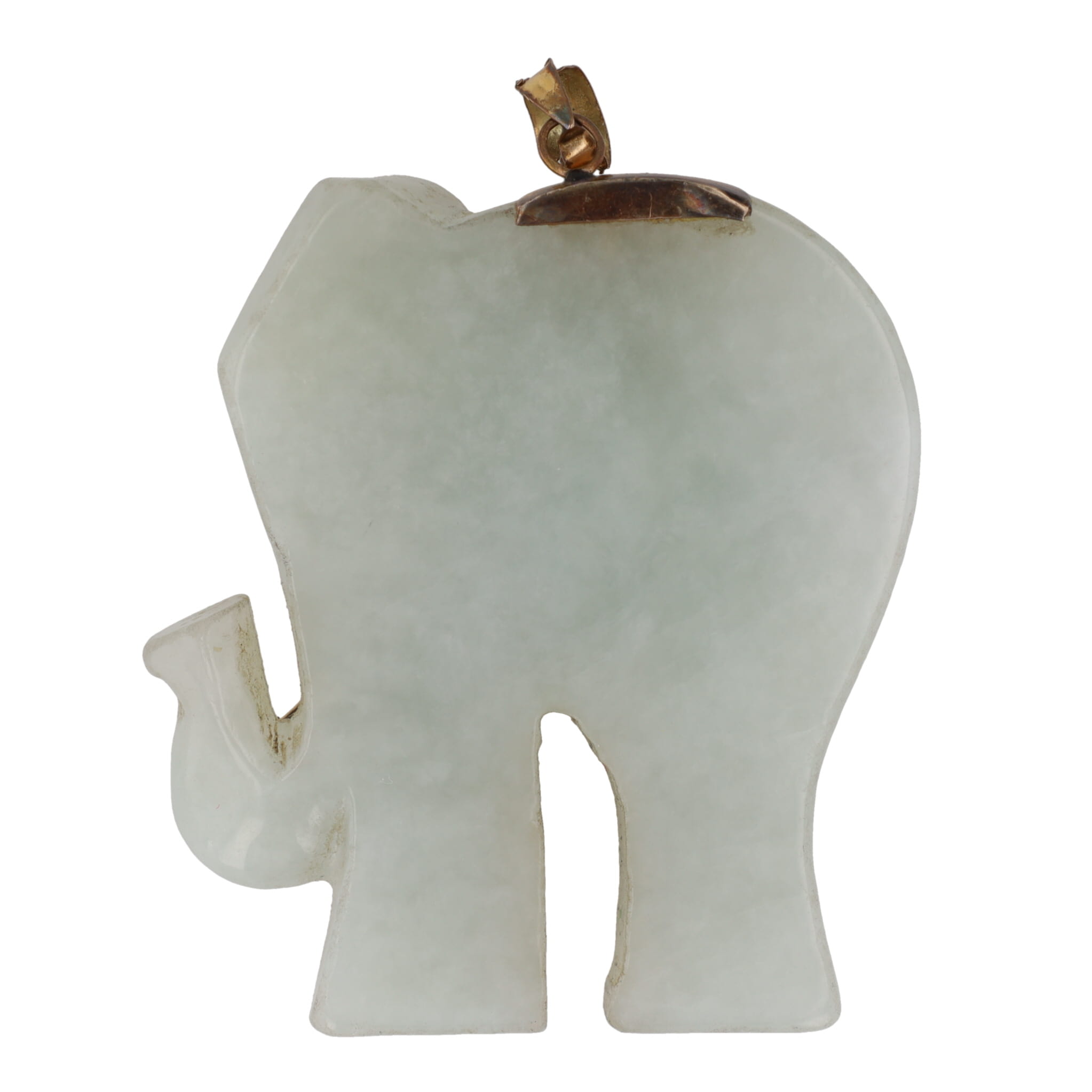 Large Jade Elephant Pendant with Ruby Eye and 14K Gold Details 23g Marked 585. Marked 585/14K