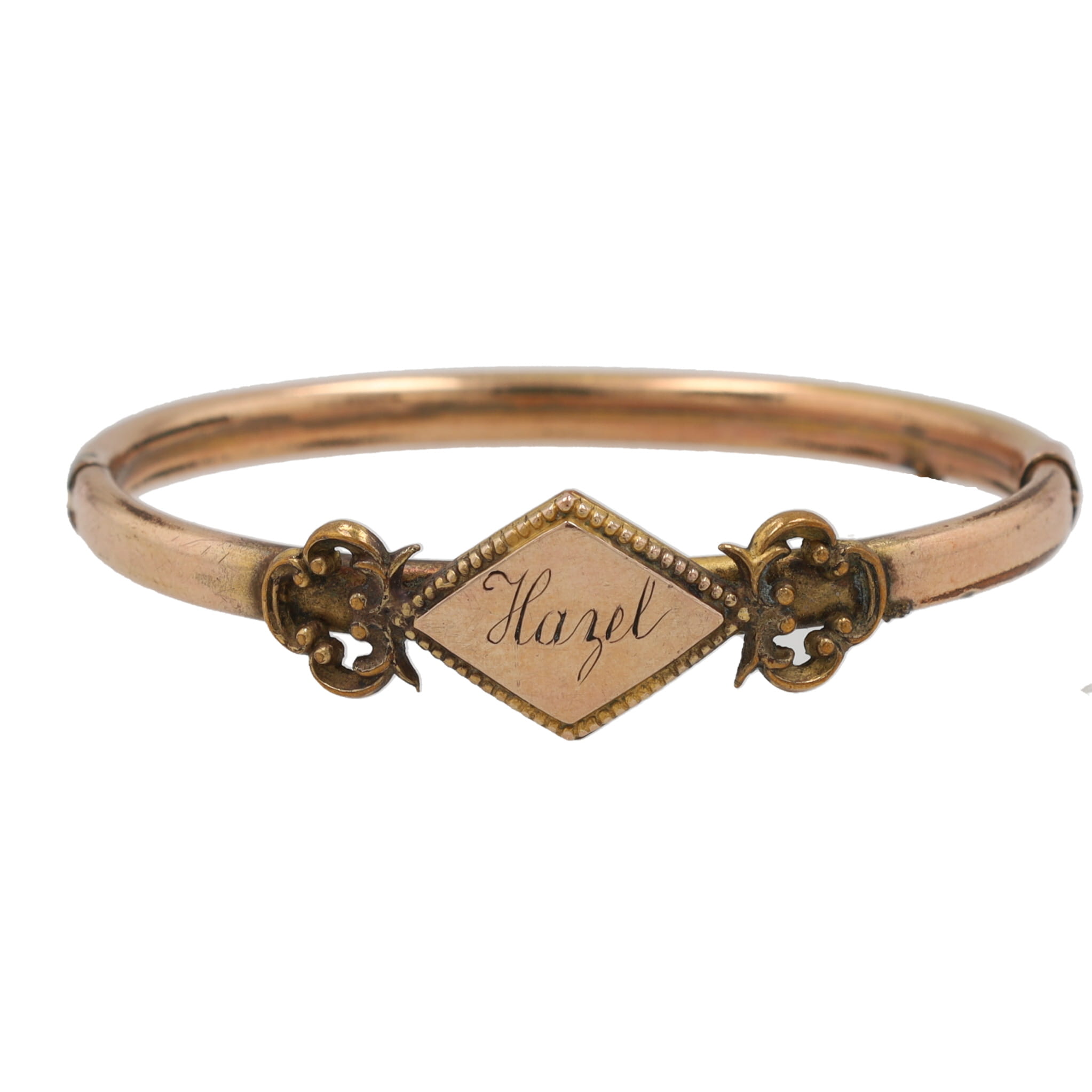 Beautiful Victorian “Bebe” Bracelet Engraved “Hazel” Gorgeous Petit Point and Floral Motif Detail 4.9g