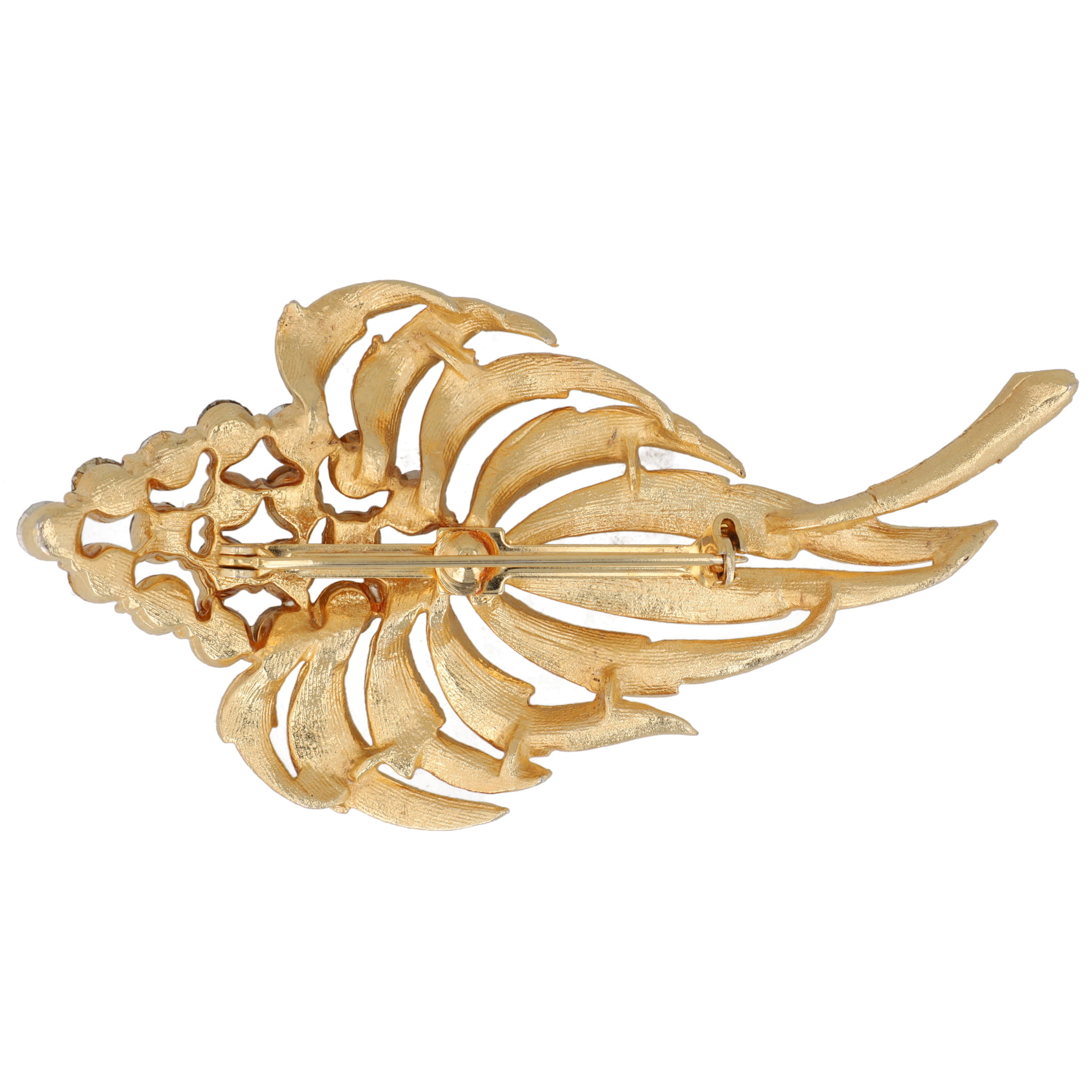 Retro Aurora Borealis Crystal, Gold Tone Floral Brooch, 1940s