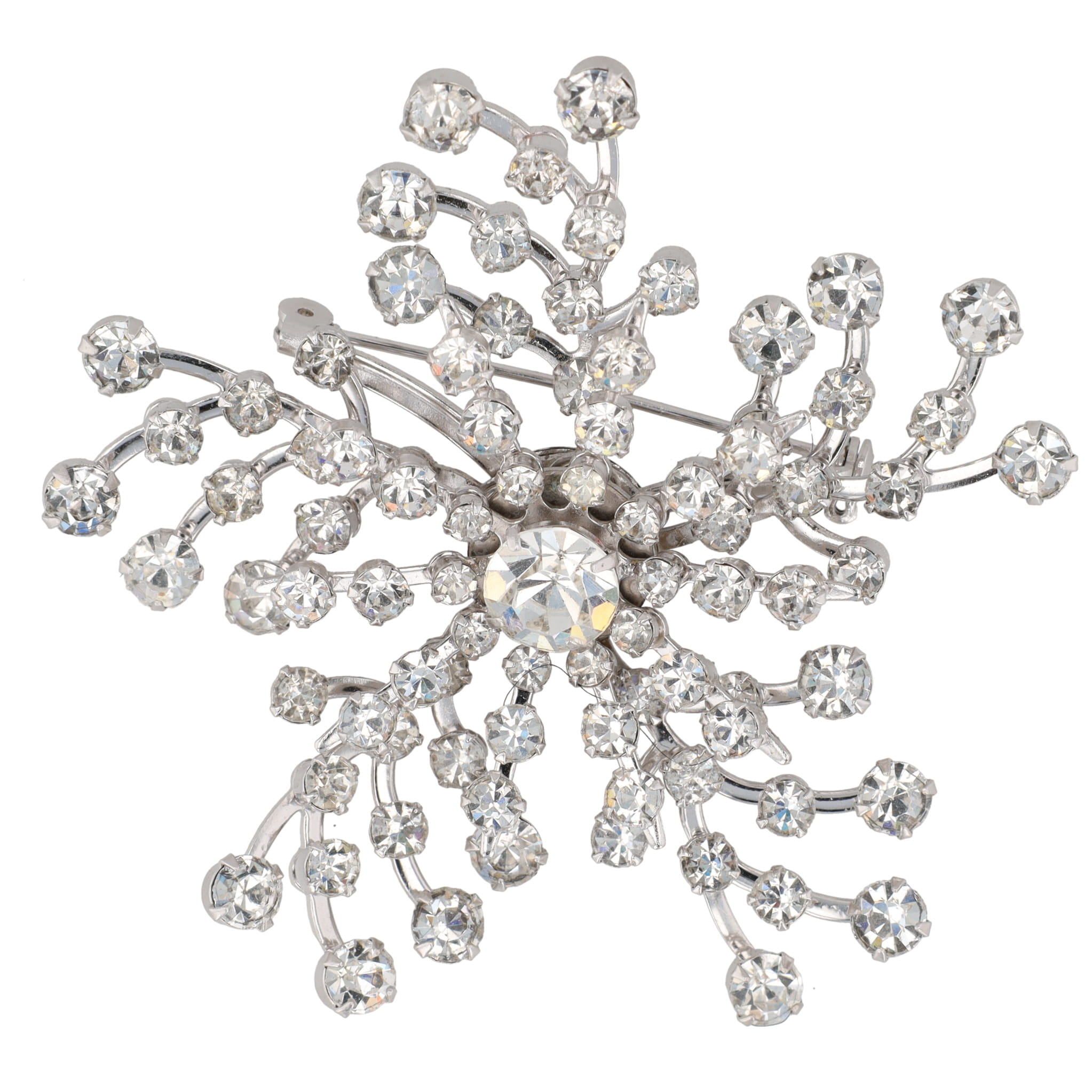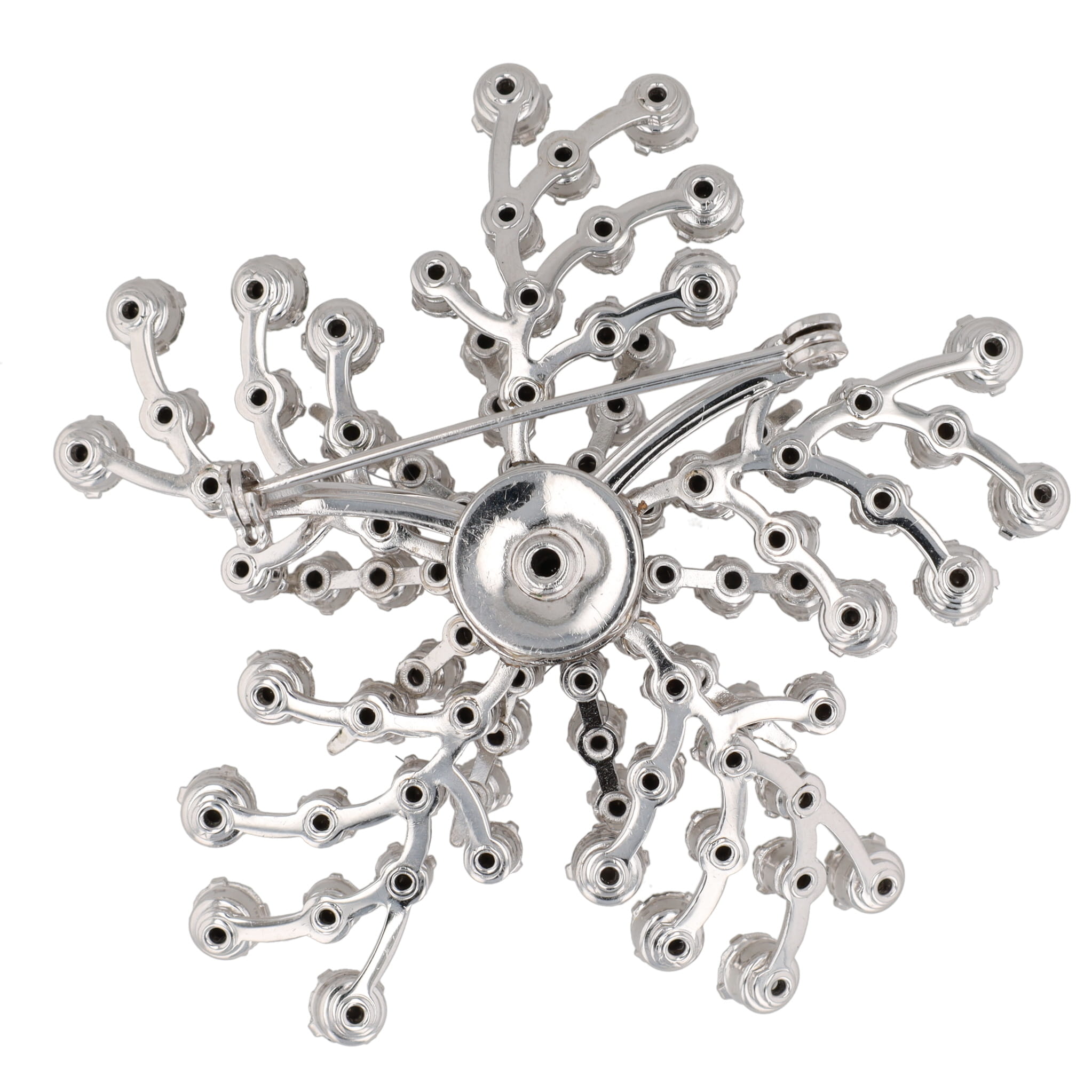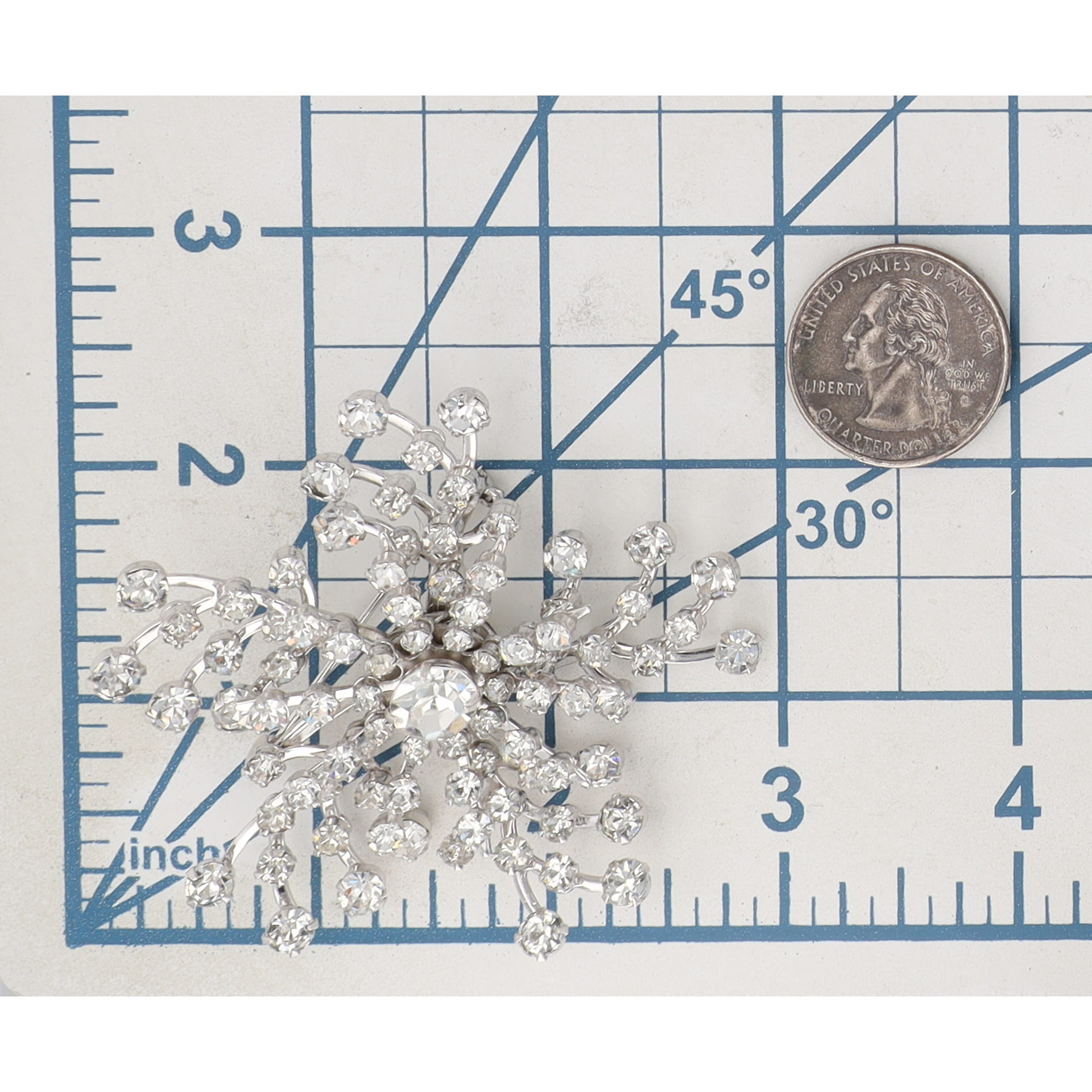Stunning Vintage Rhodium Plated Rhinestone Snowflake Brooch, Delicate and Bright