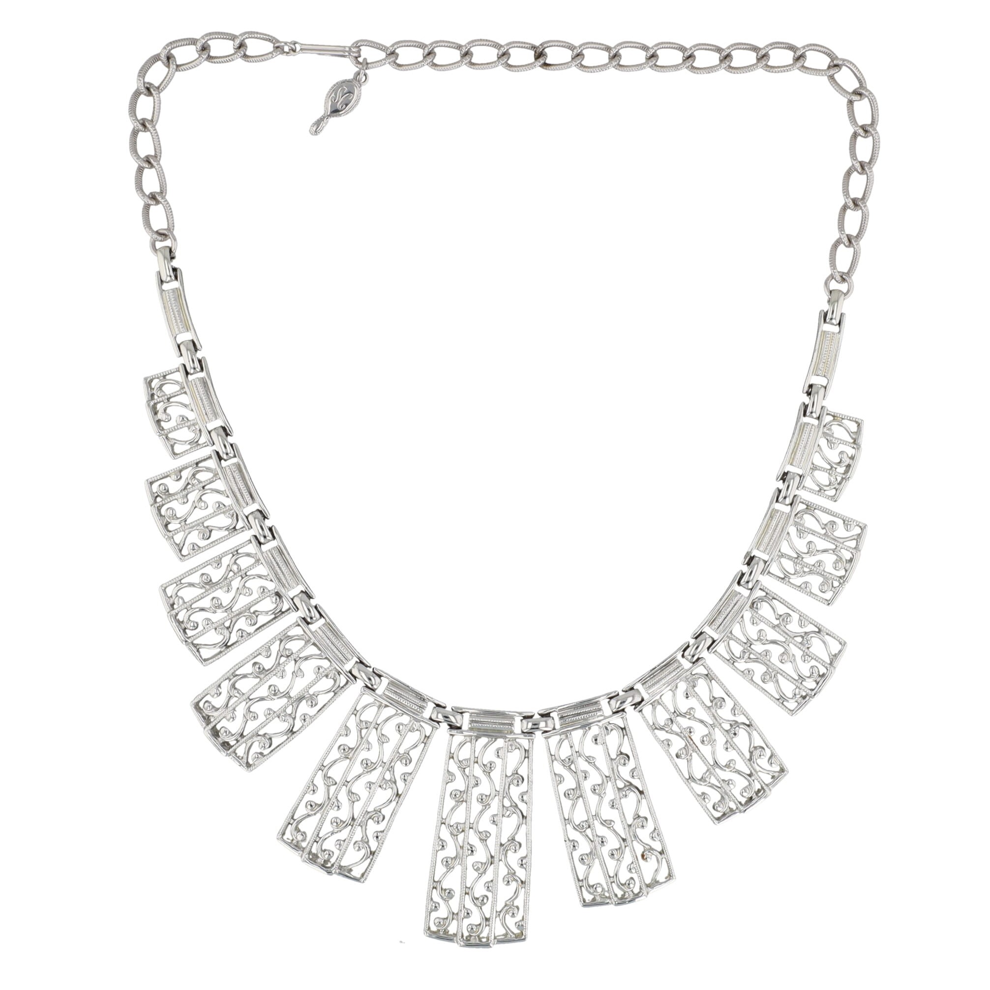 Sarah Coventry 1962 “Lady of Spain” Silver Tone Bib Necklace. Signed SC, SARAHCOV