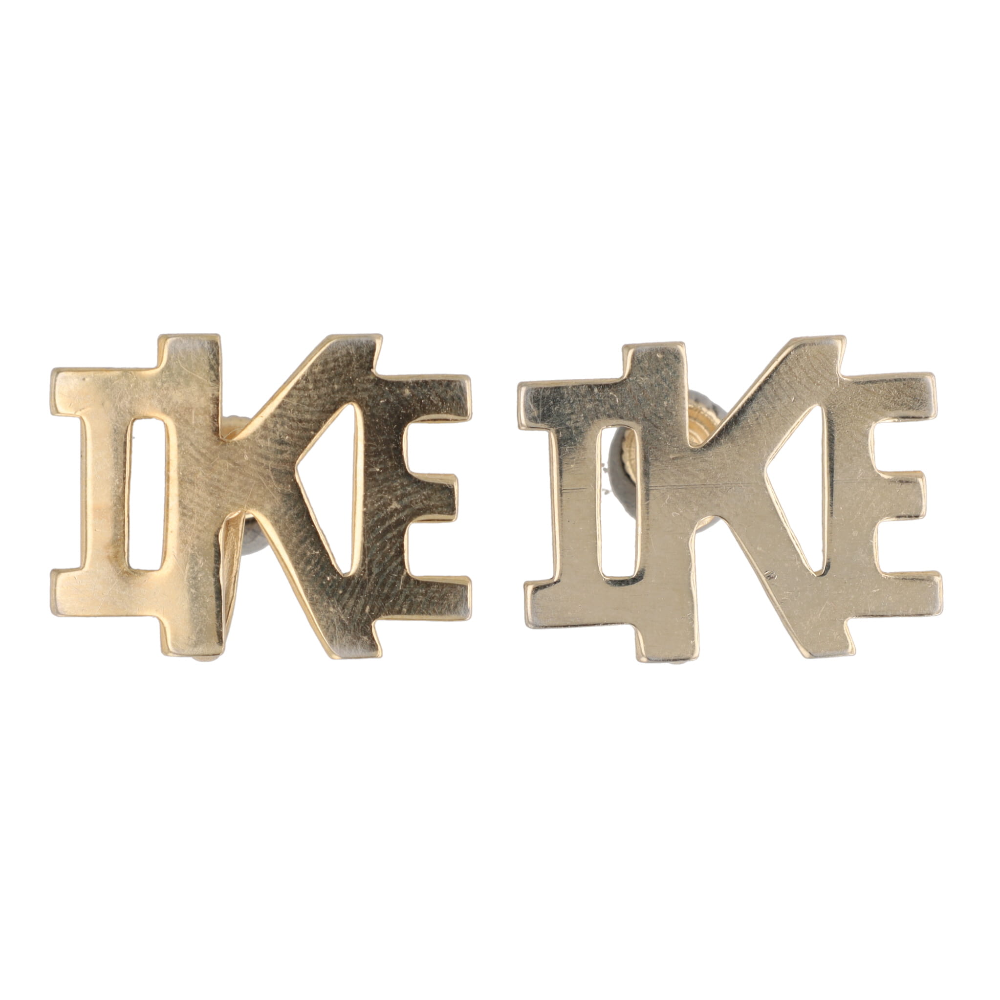 Vintage 1950s "IKE" Screw Back Gold Tone Earrings