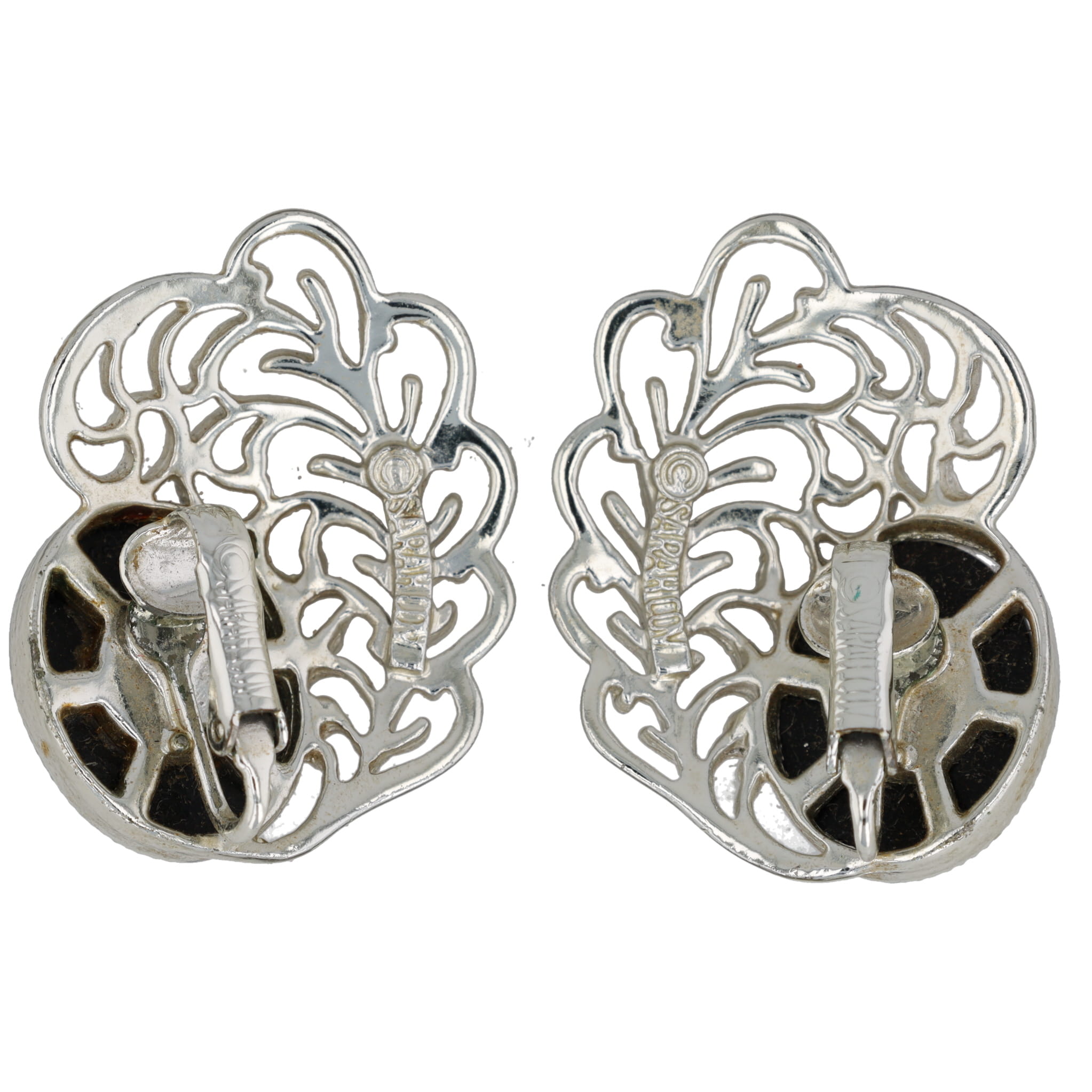 1962 Sarah Coventry Silver Tone Clip On Earrings, “Royal Plumage” Collection. Signed SARAHCOV