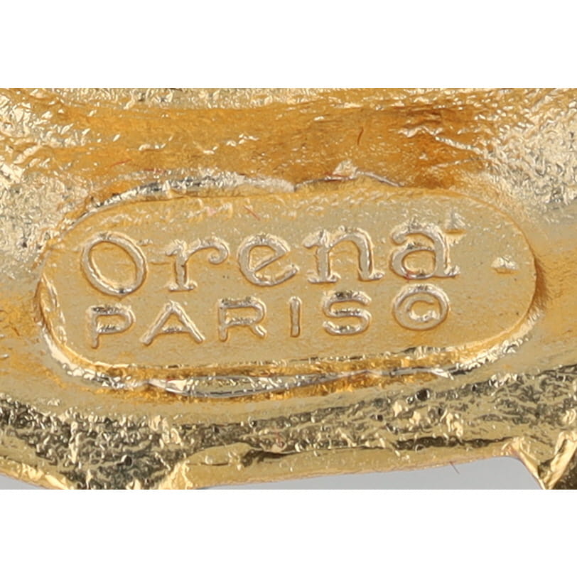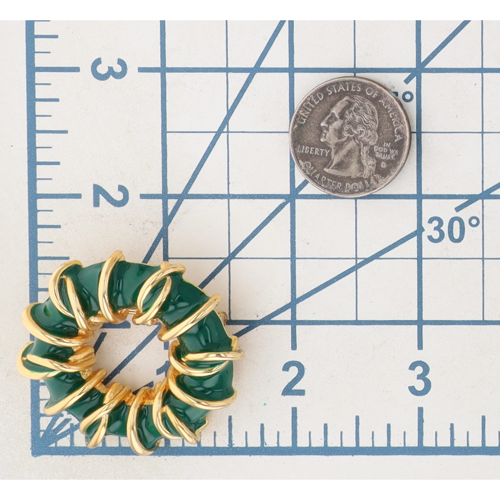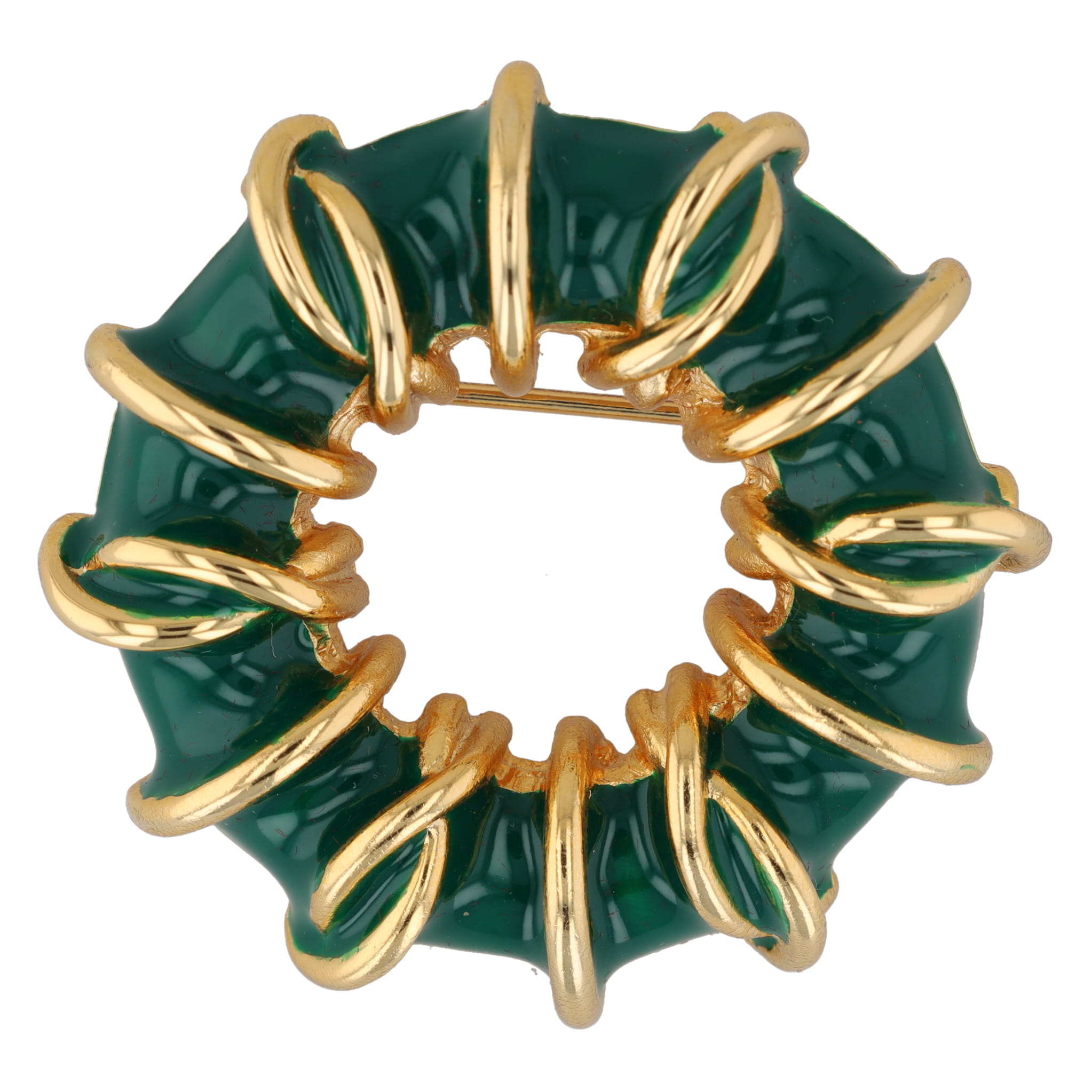 Vintage Orena Paris Gold Tone and Green Enamel Circle Brooch, Like New