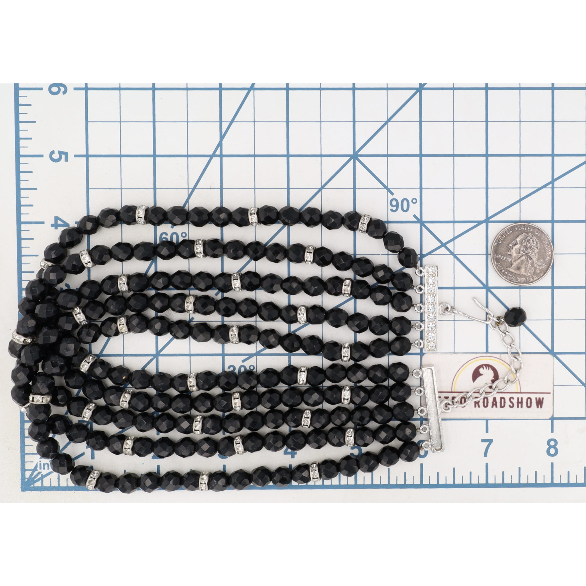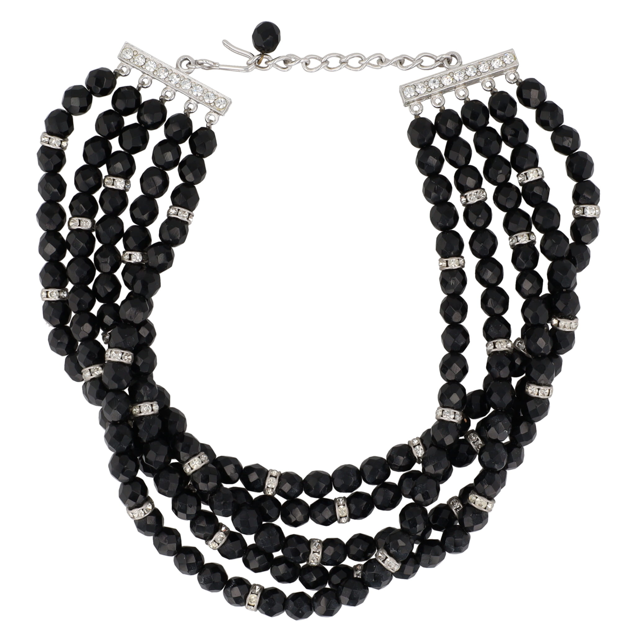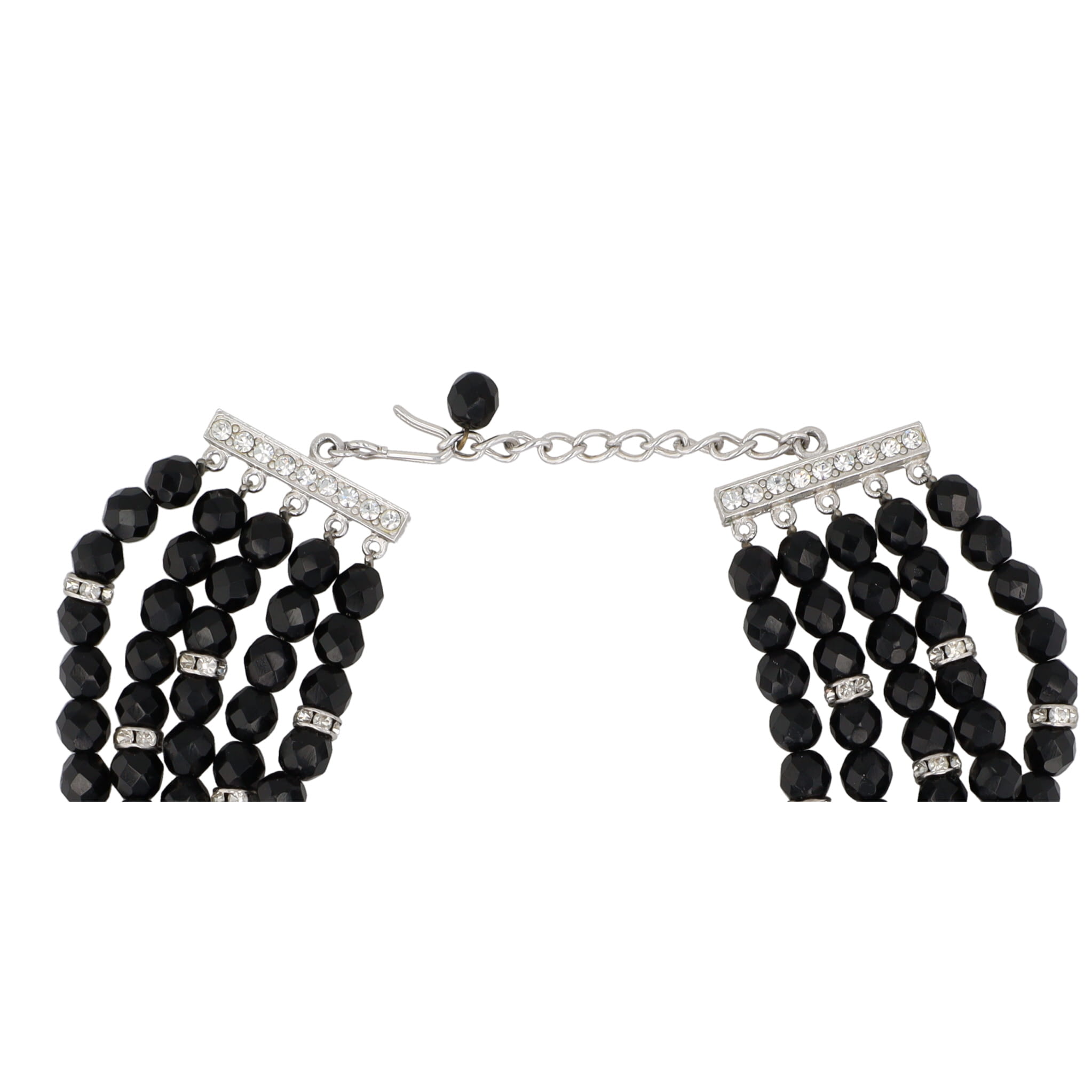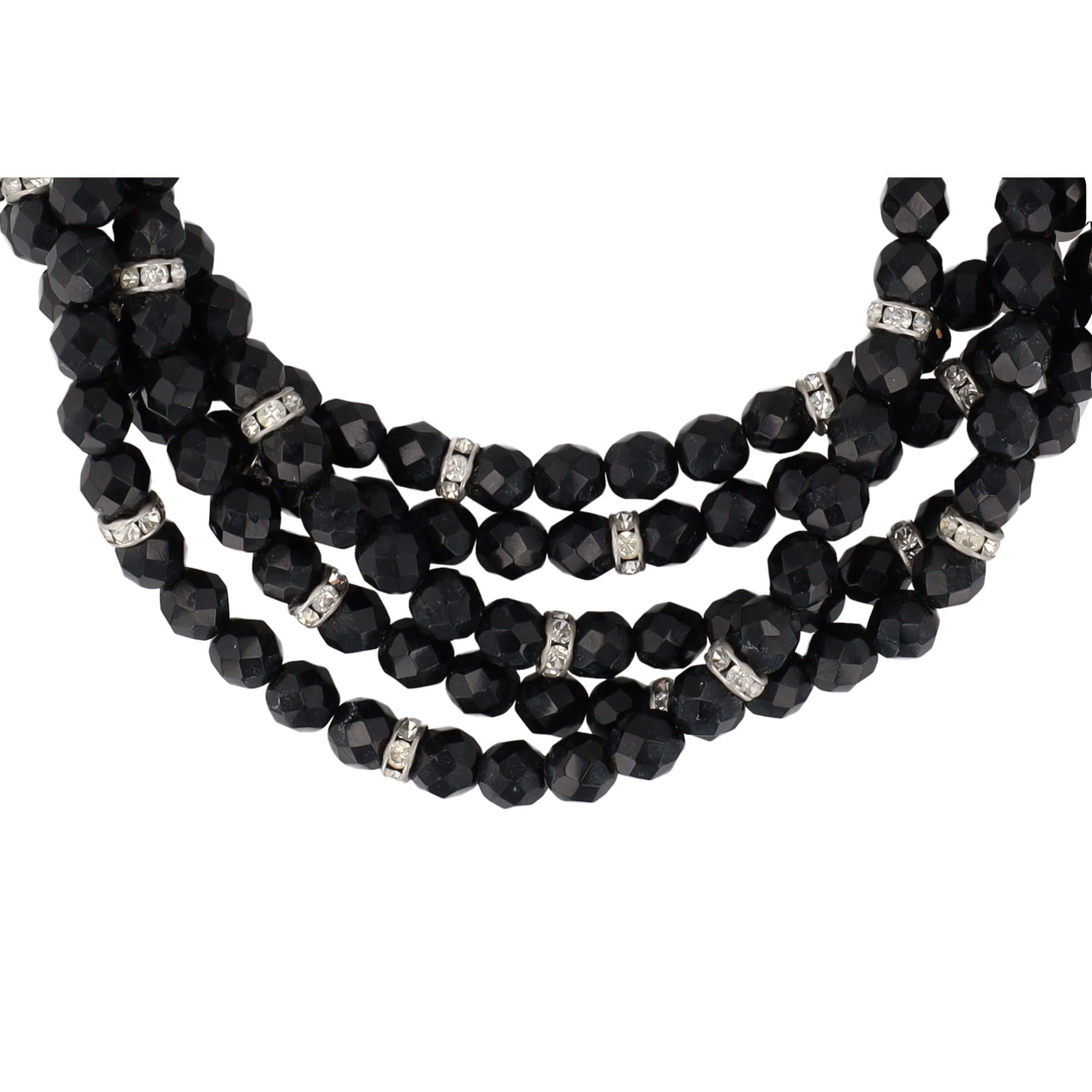 Lovely Five Strand Jet Black Bead Choker with Rhinestone Stations