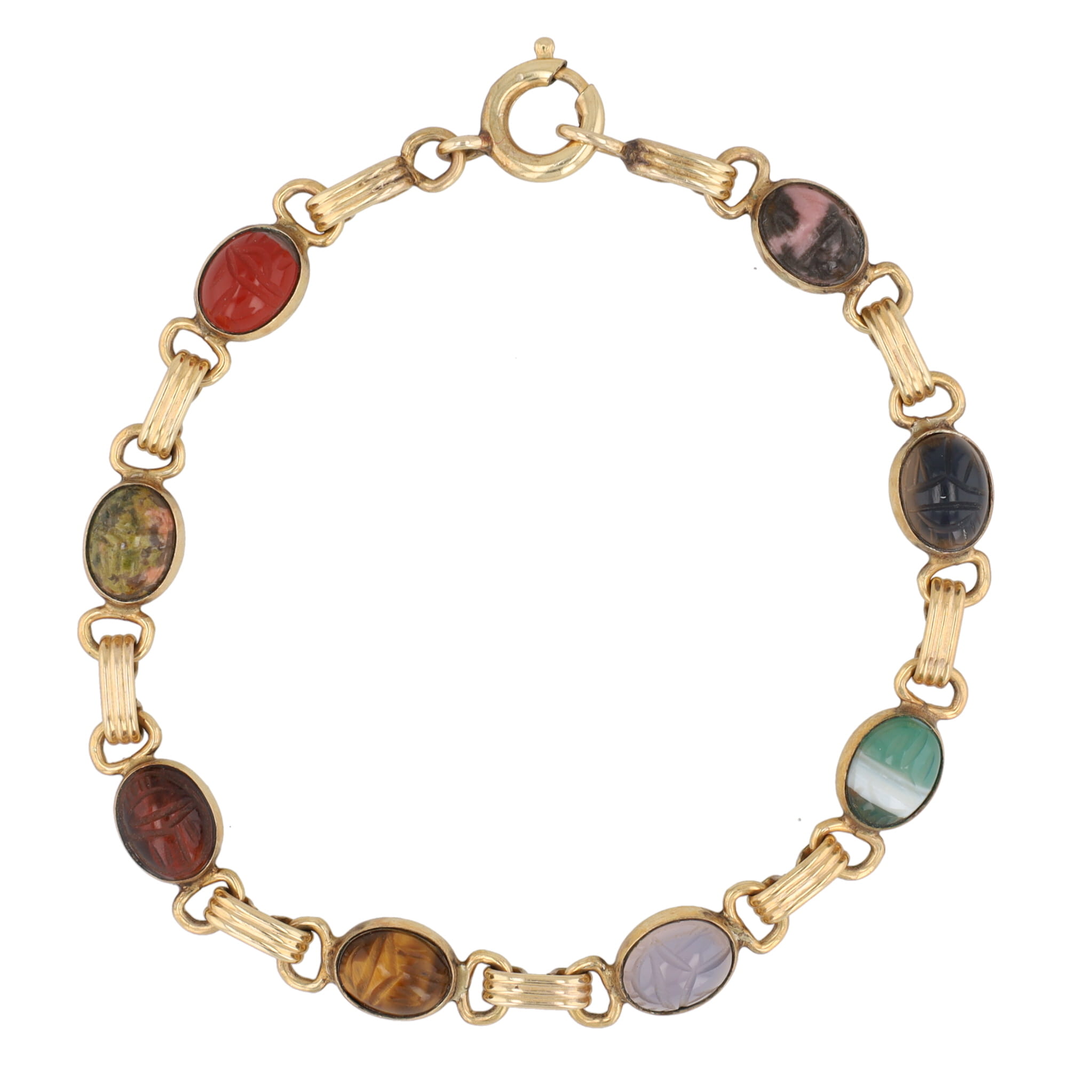 Vintage 1960s 12k Gold Filled Mixed Stone Scarab Bracelet 8.2g, Marked 1/20 12k