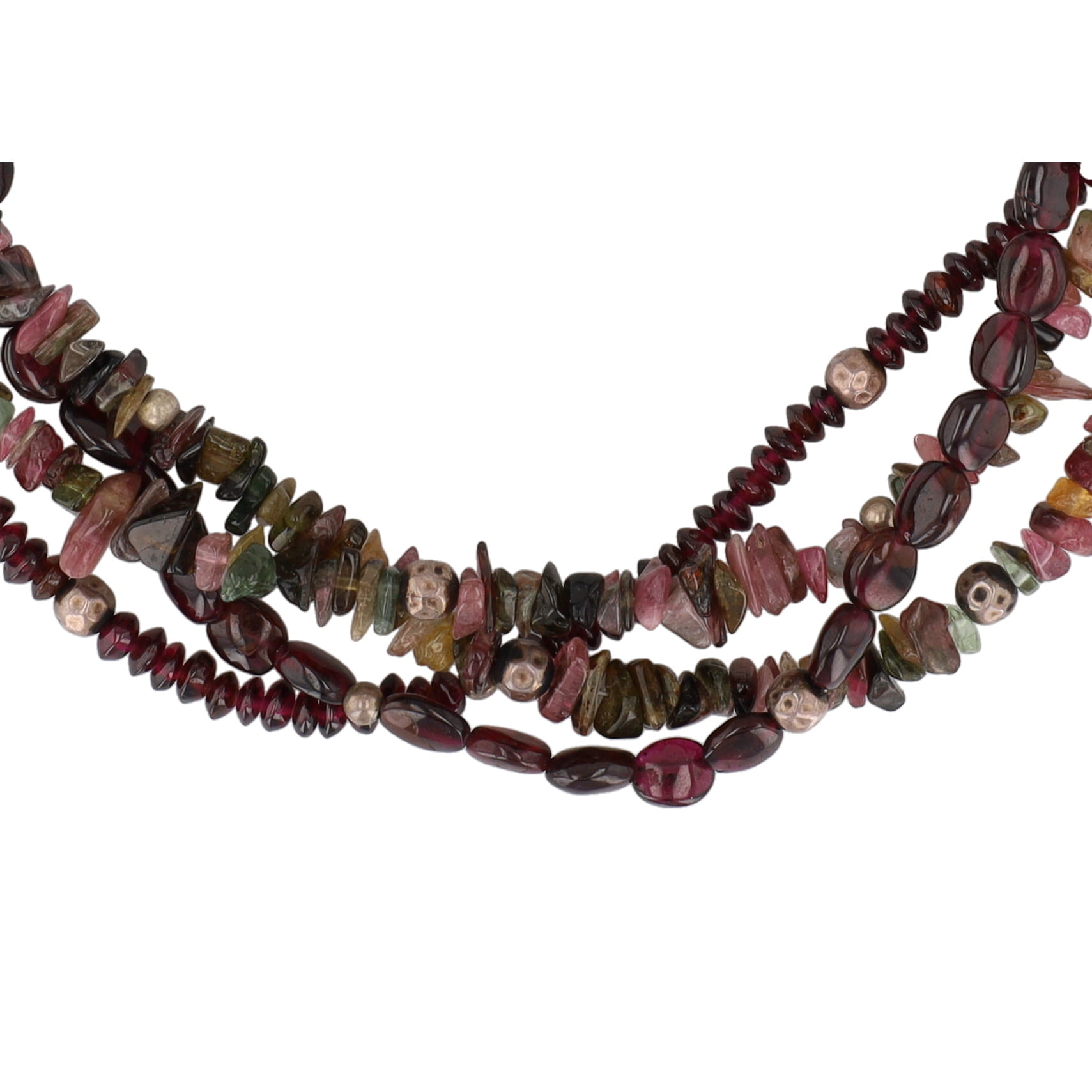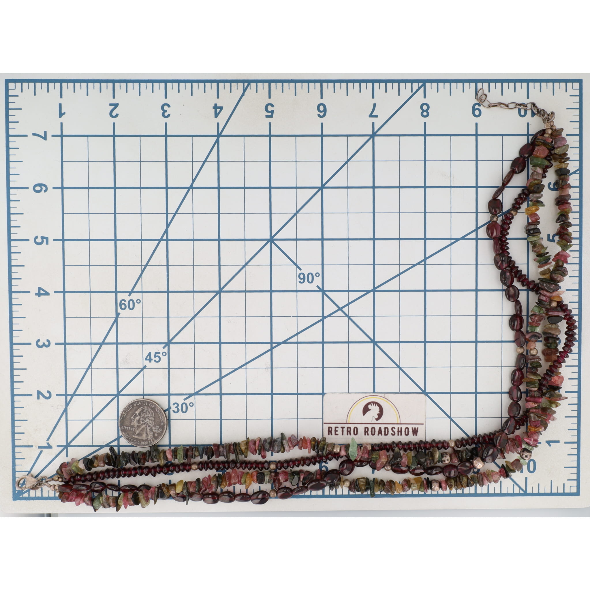 Four Strand Garnet/Mixed Stone Necklace with Sterling Clasp, Signed and Marked A.S. 925 Israel