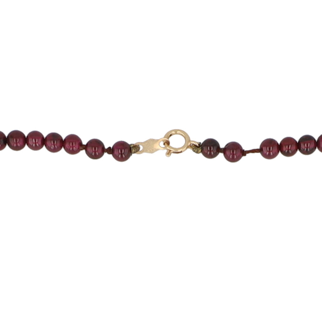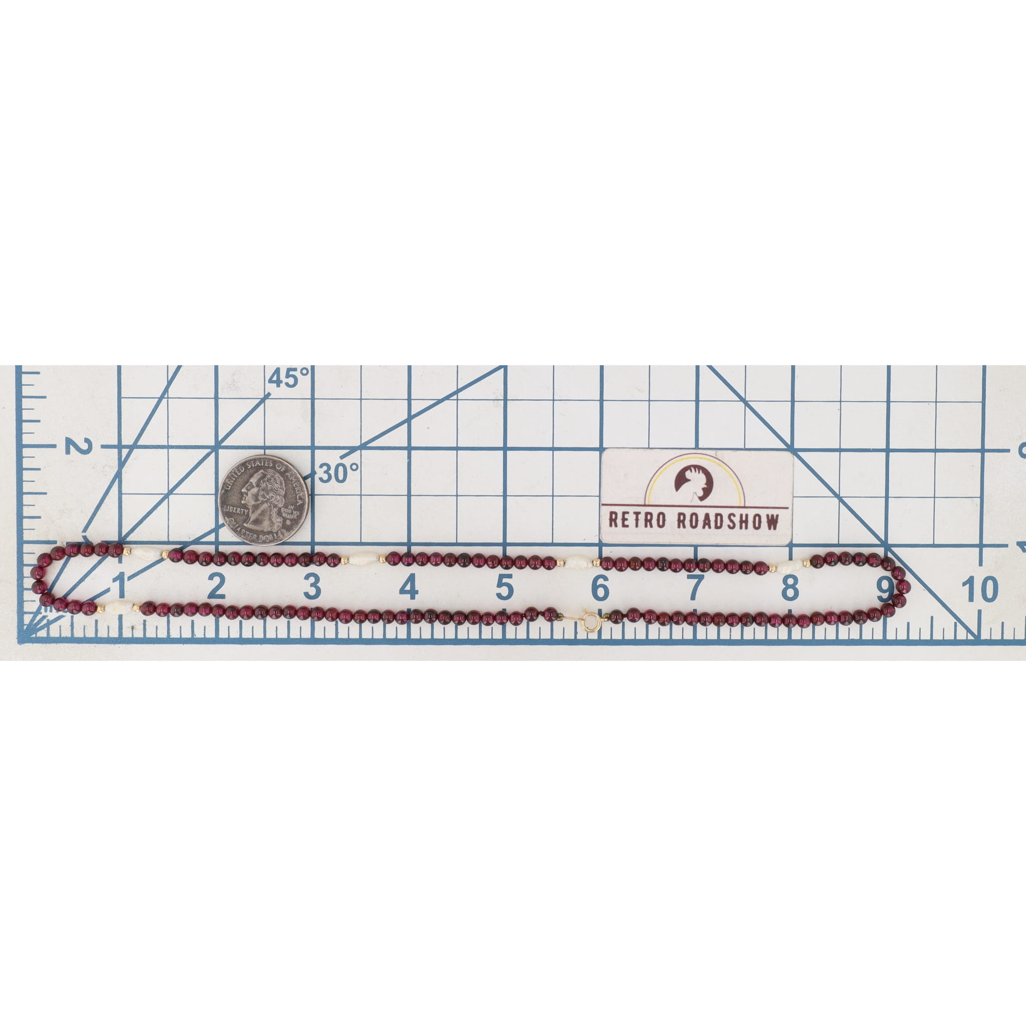 Garnet, Freshwater Pearl, 14K Gold Beads and Clasp Necklace. Marked 14K, 13.5g