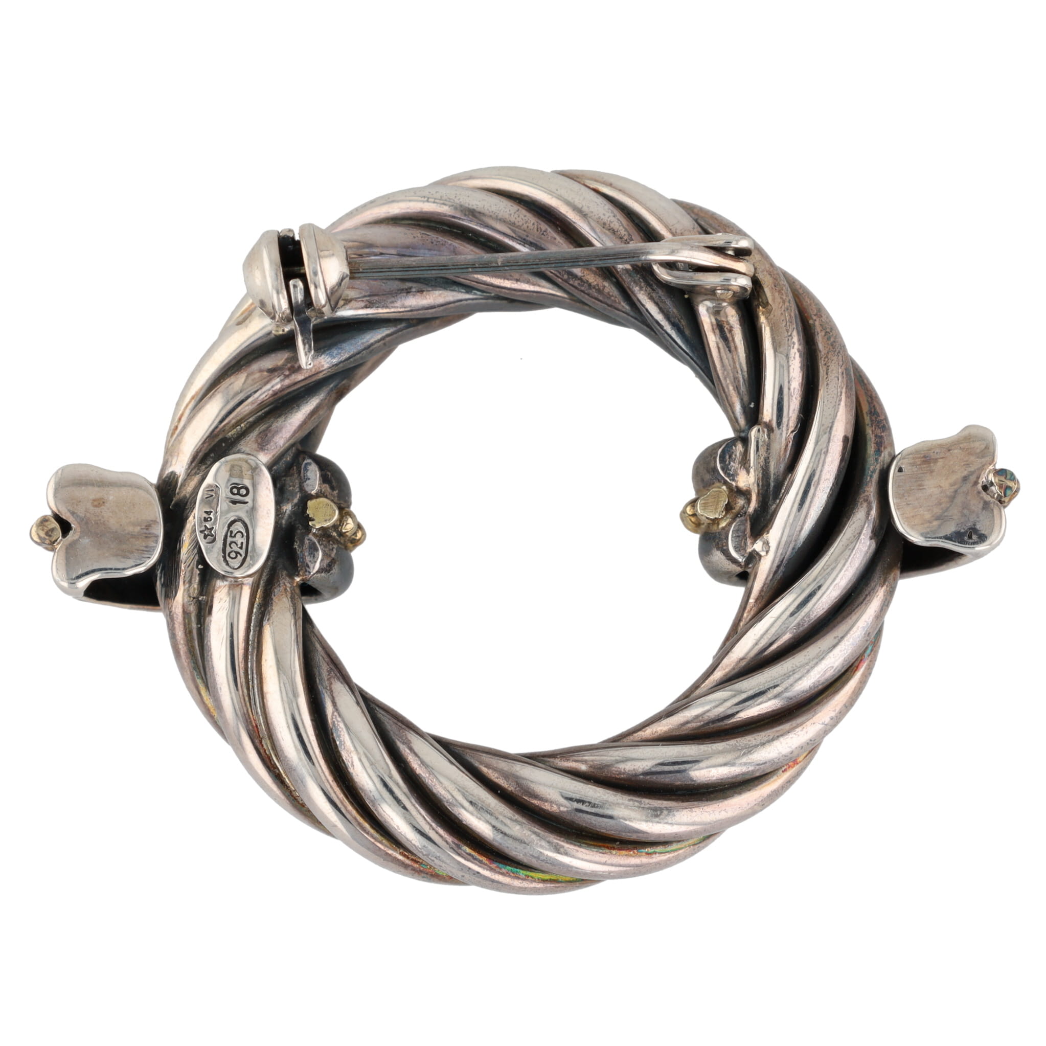 Vintage Italian 18K Gold/Sterling Silver Round Cable Design Brooch. Possibly Designer Fili Menegatti, Signed and Marked 925. 18, 14.1g