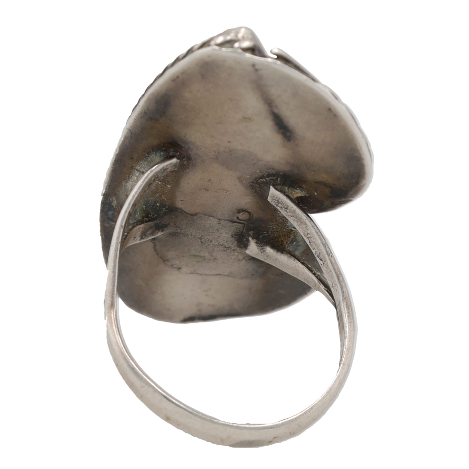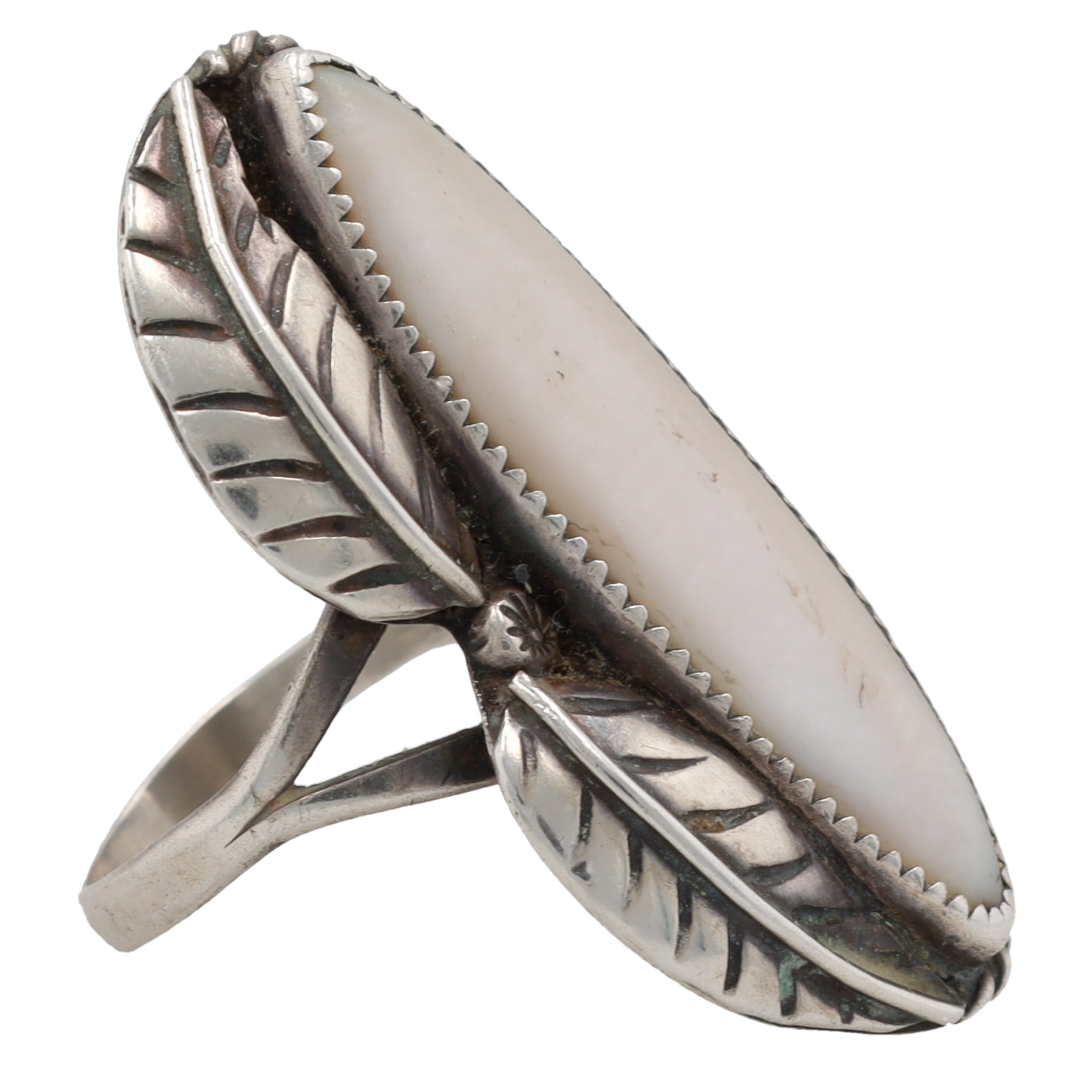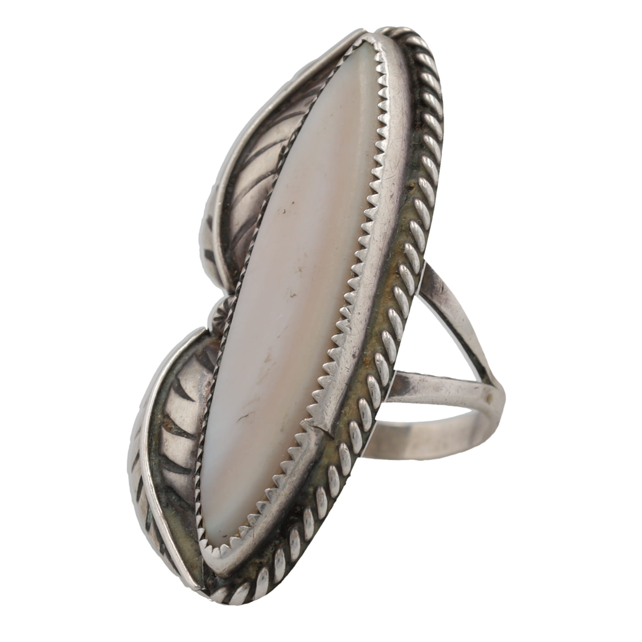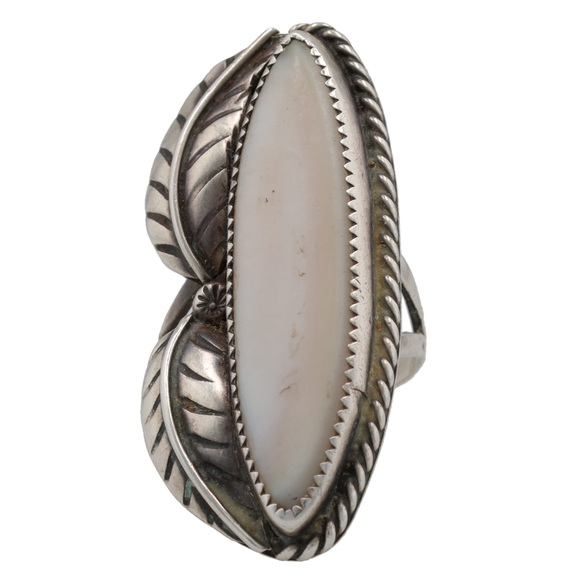 Signed LC Navajo Mother of Pearl Sterling Leaf Ring Sz 7.5, 9.5g
